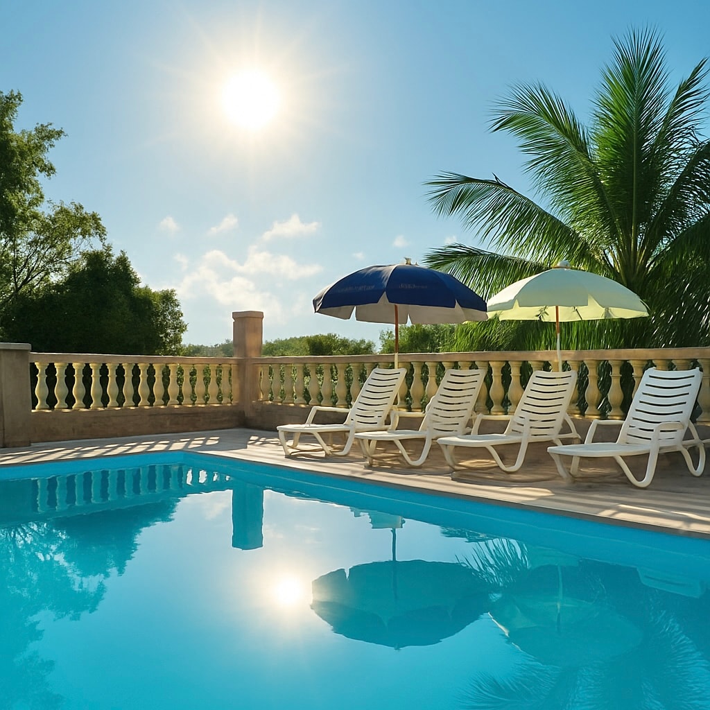 Casa di un piano con 2 camere da letto, soggiorno, cucina/edicola e lavanderia. Ampio cortile alberato con piscina, mini campo da calcio, campo sportivo e garage coperto. Piscina in muratura, lunga 8 metri per 4 metri di larghezza, con profondità variabile e graduale, a partire da 80 cm fino a 1,80 m. C'è internet in fibra, con velocità di 150mb, disponibile tramite connessione wi-fi.