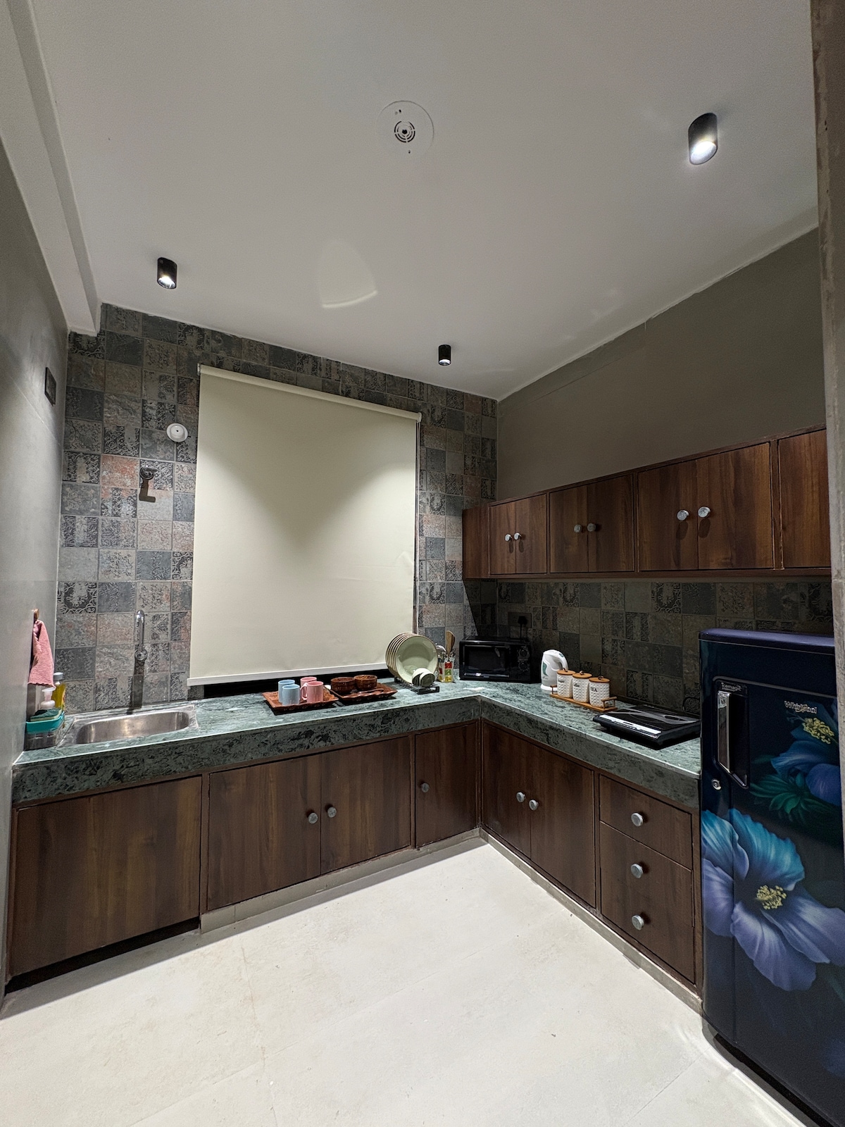 Racconti divertenti: un soggiorno in un boutique hotel a Vrindavan Prova le "vibrazioni positive" di Laugh Tales, un monolocale dal design accattivante, situato al 4° piano di un complesso residenziale di lusso. Fondendo perfettamente lo spirito del nomadismo con la spiritualità, la nostra casa offre un rifugio tranquillo con viste mozzafiato sul tramonto e un ambiente verde lussureggiante. Punti salienti Posizione privilegiata: situato vicino a ISKCON, Prem Mandir e Banke Bihari Ji, Keli Kunj (dimora di Premanand Ji Maharaj) a pochi passi dai mercati locali e da un ampio parcheggio.