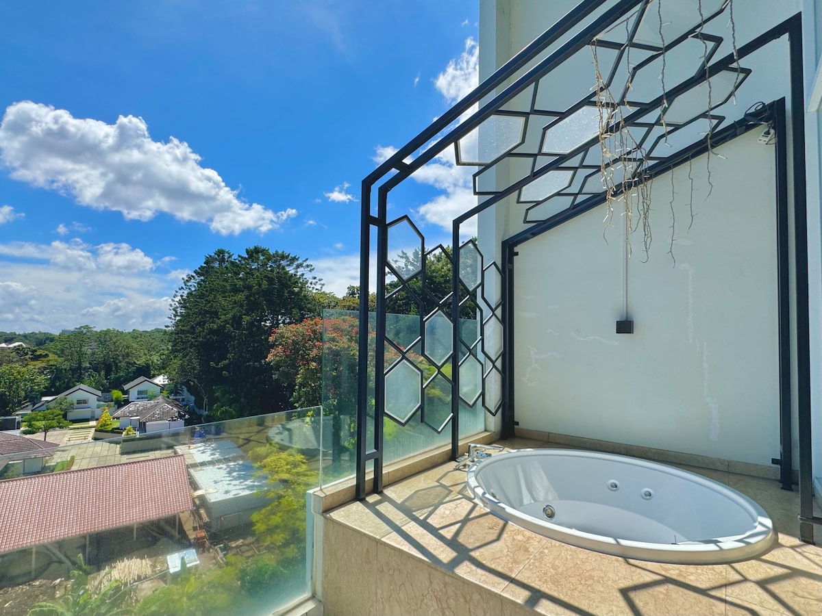 🌟 Emerald Haven Pool Penthouse - 2 camere da letto in stile Art déco 🌟 Il nostro attico si trova al 1° piano dell'Art Deco Luxury Hotel & Residence, con arredi moderni e uno stile classico che offre la migliore esperienza di lusso. Questo loft vanta soffitti alti, un ampio soggiorno e una piscina privata in un giardino privato. La posizione è vicina a Dago e alle principali destinazioni turistiche di Bandung. Perfetto per famiglie, amici e grandi gruppi. Consulta il nostro profilo per unità da 1 a 4 camere da letto e ville di lusso a Bandung