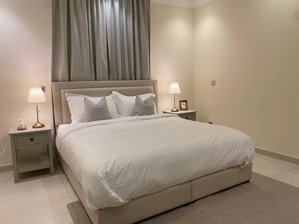 استمتع بإقامة فاخرة في هذه الشقة العصرية المكونة من غرفة نوم وصالة مريحة. الشقة مجهزة بكل وسائل الراحة التي تحتاجها، بما في ذلك مطبخ كامل لطهي وجباتك الخاصة، وحمامين أنيقة وحديثة .تقع الشقة في موقع هادئ وقريب من المعالم السياحية والمحلات التجارية والمطاعم مثالية للأزواج أو المسافرين المنفردين الباحثين عن إقامة مريحة وهادئة