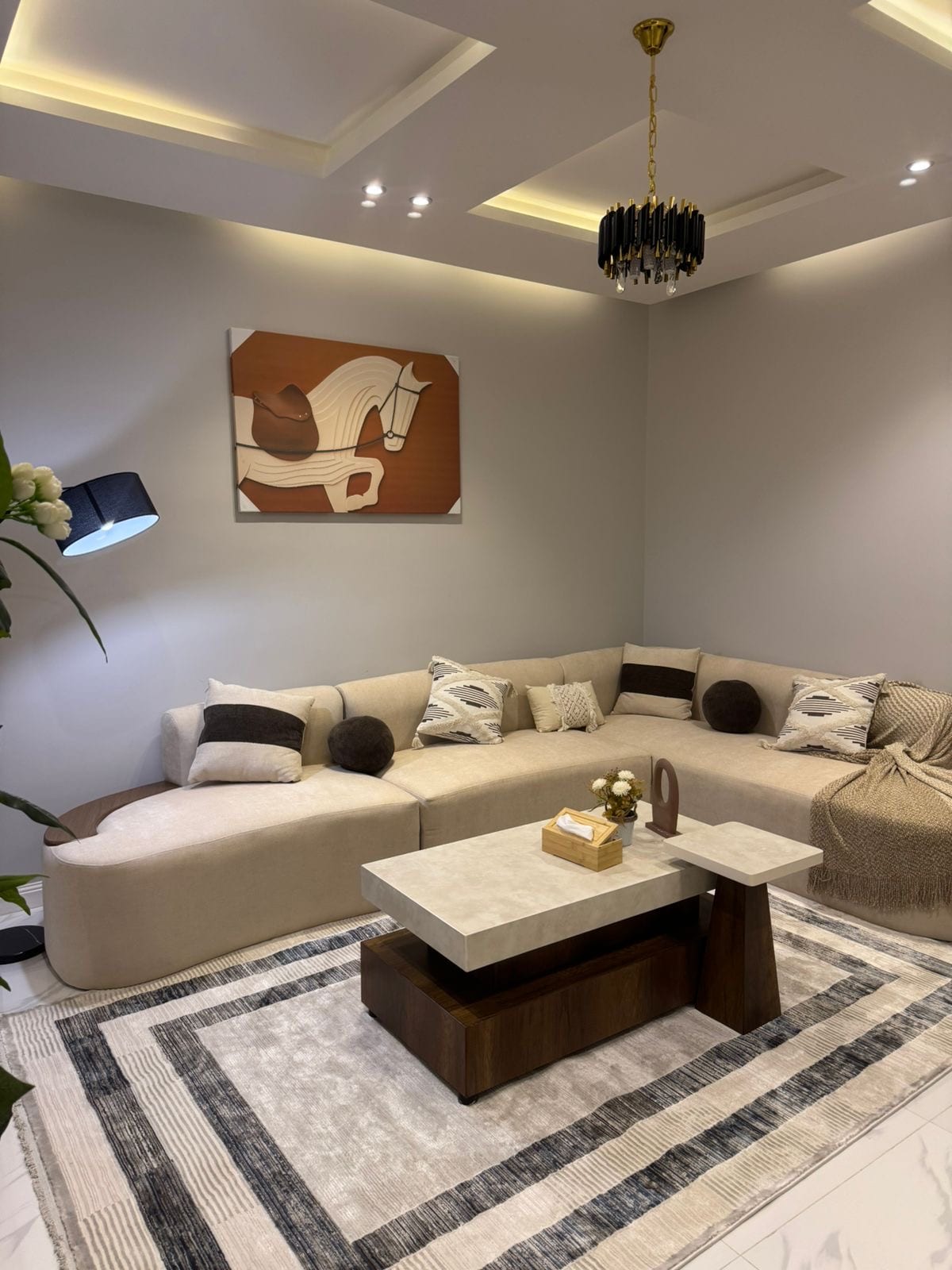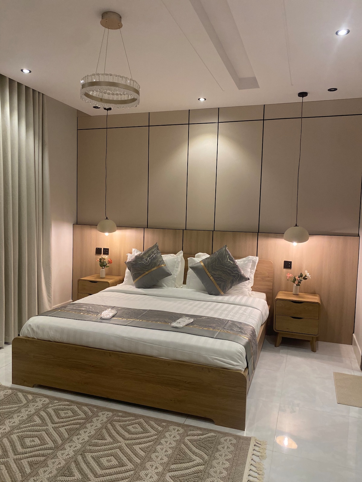 غرفتين نوم وصالة حديثة شاشة 75بوصة