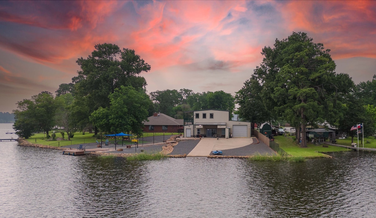 Accogliente chalet all'angolo del Lago dei Pini. Situato nel desiderabilissimo quartiere di Crestwood e a meno di un chilometro e mezzo dalla rampa per le barche del porto turistico di Johnson. Goditi la vita lacustre da questa piccola cabina rossa con soffitti alti e a volta che conducono a grandi finestre a bovindo che si aprono su una splendida vista sul lago. La casa può ospitare comodamente 9 persone, con 2 camere da letto private e una zona giorno aperta che include due divani che possono essere trasformati in letti. Goditi uno dei laghi più belli del Texas orientale!