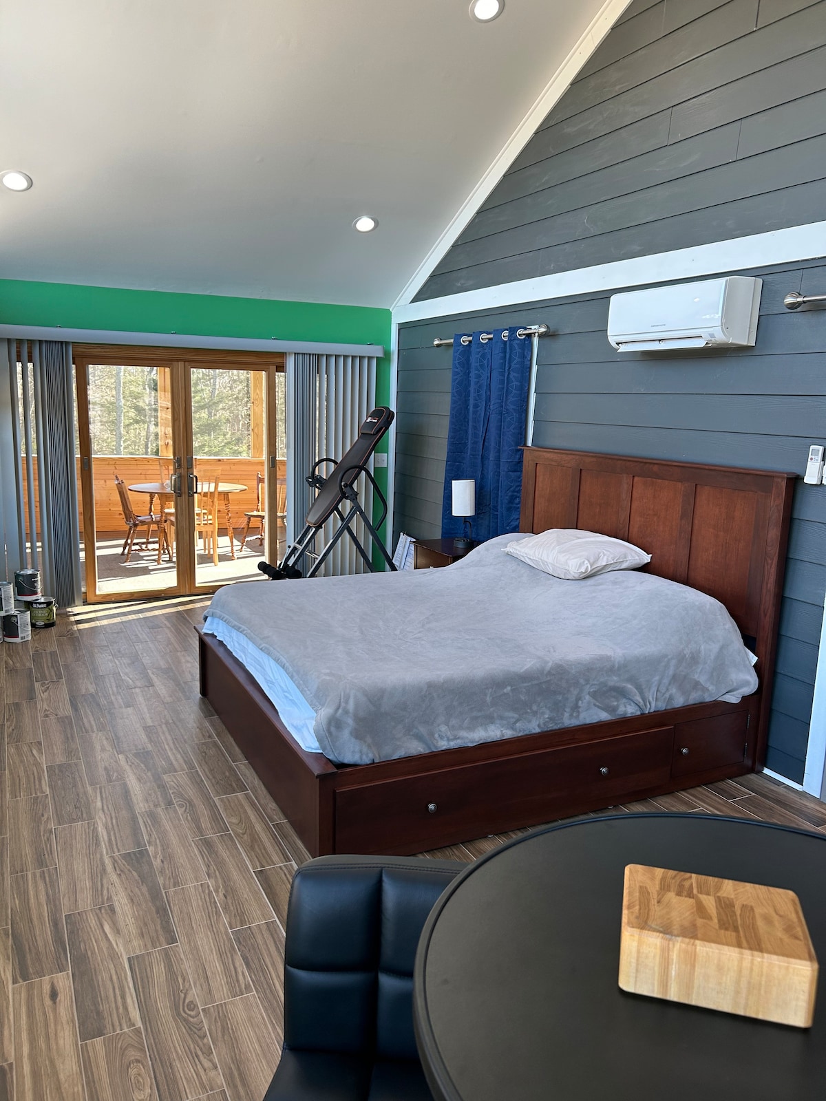 Il Barndominium è un bellissimo esempio di appartamento in stile loft industriale con un concetto aperto e soffitto alto, dispone di una cucina completa con lavanderia e bagno privato situato in un'area privata che crea la sensazione di essere circondati dalla foresta pur essendo vicini e comodi per l'IU e il lago Monroe! Seguici su Instagram @btownbarndo