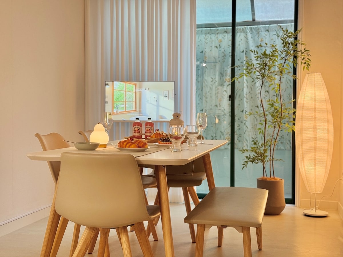 ▣ Terrazza privata in camera ▣ Area barbecue interna in comune al 1° piano dell'alloggio ▣ Vengono forniti due asciugamani per persona standard. ▣ Shampoo grande, bagnoschiuma Completamente attrezzato con utensili da ▣ cucina ▣ A 5 minuti di auto dalla stazione di Yeongjong ▣ Non vengono fornite coperte o cuscini aggiuntivi Pronto? Sono Park Avenue. Il nostro alloggio è perfetto per chi vuole avere un riposo tranquillo e confortevole. . Quando mi manca il riposo e ho bisogno di una pausa, quando mi manca il mare, è un alloggio che fonde il suono del mare e il profumo della foresta. L'ambiente naturale è abbondante, come gli impianti sportivi (calcio a 5, basket, jokgu, campo da badminton) nel parco del quartiere di 20.000 pyeong proprio dietro l'alloggio, e i sentieri costieri creati in tutto, quindi non manca il riposo. Il parcheggio è disponibile gratuitamente di fronte all'edificio e, se non ci sono posti auto, è possibile parcheggiare sul ciglio della strada, ma non c'è un servizio di vigilanza del parcheggio perché è una proprietà privata della città. . L'alloggio è dotato di smart TV da 50 pollici, frigorifero, lavatrice a tamburo, piano cottura a induzione, forno a microonde, pentola elettrica, pentole, padelle e varie stoviglie, e sono installati condizionatori a soffitto in ogni camera e nel soggiorno.