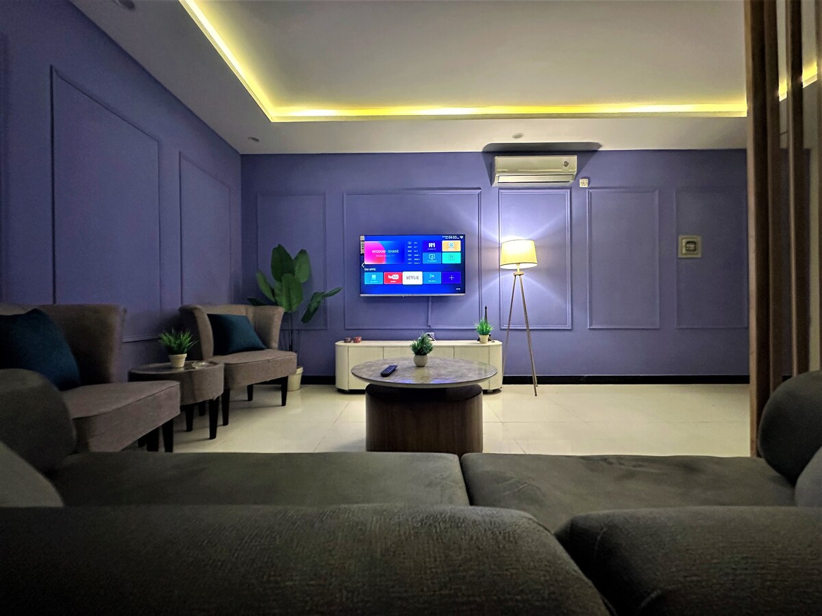 Un lussuoso appartamento progettato con cura con una zona giorno in stile caffè olandese a Gulberg Greens, Islamabad; è dotato di un posto auto riservato. Questo appartamento privato e spazioso è perfetto per avventurieri solitari, chi viaggia per lavoro, coppie o chiunque cerchi una vacanza di lusso a Islamabad. Raggiungi a piedi i ristoranti, i bar e i negozi di alimentari aperti 24 ore su 24, 7 giorni su 7, oppure resta a casa a guardare la TV, leggere un libro e gustare un caffè nel tuo bar! WiFi, UPS, acqua calda e posto auto sicuro designato