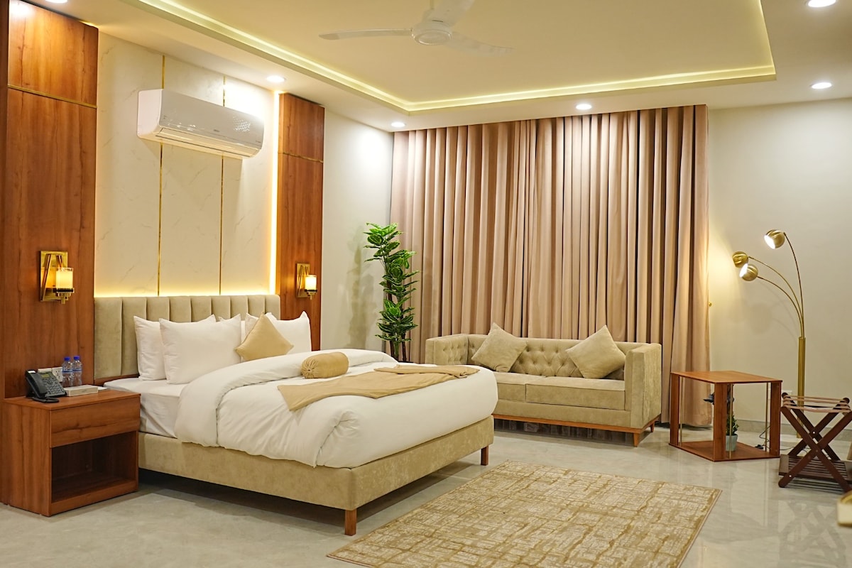 Ti diamo il benvenuto su Global Glory Holiday Homes ®️. Soggiorna in un appartamento rilassante e adatto alle famiglie con 2 camere da letto a Kashmir Heights, l'indirizzo più desiderabile a Citi Housing, Jhelum. Questo lussuoso appartamento con 2 camere da letto dispone di 2 letti matrimoniali grandi, bagni moderni, una cucina per famiglie, un accogliente salotto, aria condizionata in tutte le camere, UPS di riserva, WiFi, smart TV e parcheggio gratuito. Goditi la vista sul giardino e l'accesso percorribile a piedi al Parco a tema Citi, al Cinema dell'Opera, ai ristoranti, alle banche e ai supermercati. Perfetto per famiglie, coppie e soggiorni di lavoro. Casa lontano da casa