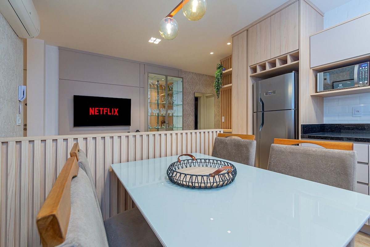 L'appartamento è stato progettato per rendere il soggiorno a Gramado indimenticabile. Dotato e super accogliente, con tanta luce naturale e incorporato nella natura attraverso l'affascinante balcone con ringhiera in vetro. Dispone di 1 camera da letto, bagno, cucina attrezzata, zona servizio e soggiorno con caminetto. Wifi e spaccatura. Situato a 400 metri dal Mini World e a 600 metri dalla stazione degli autobus Gramado. Si affaccia sul giardino e si trova a meno di 1 km dal Lago Nero di Gramado e a 11 minuti a piedi dalla chiesa di San Pietro.