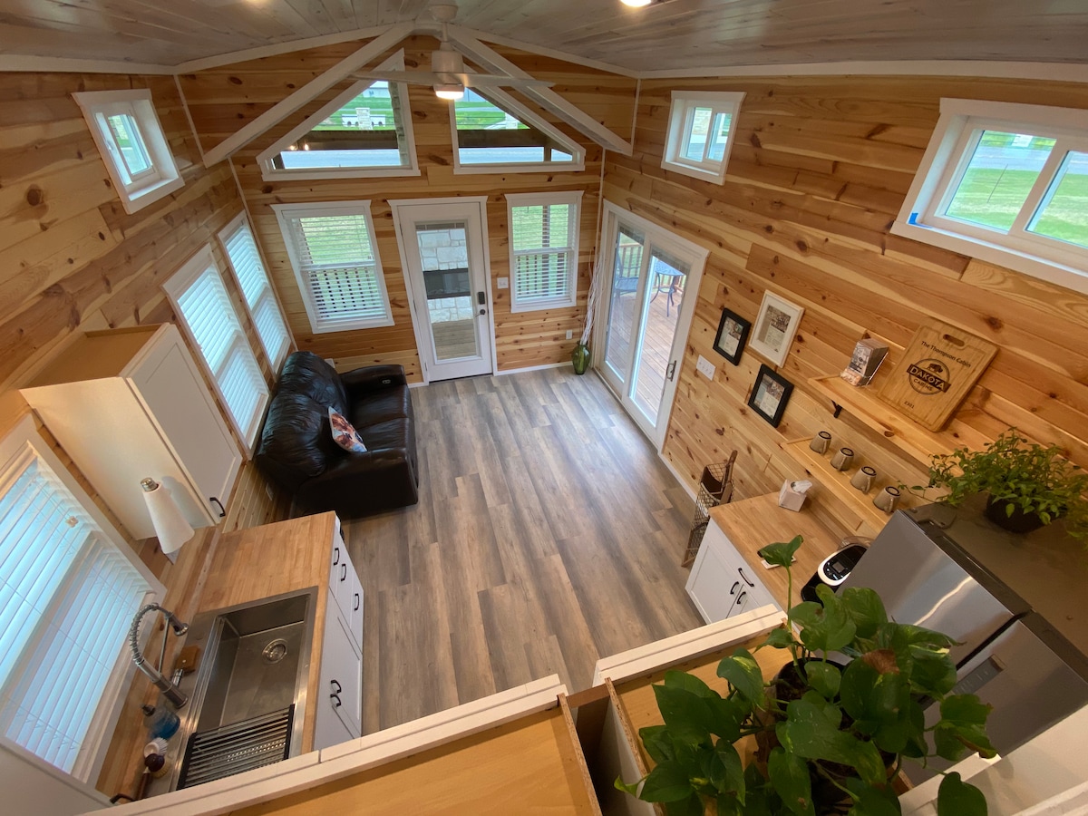 Accogliente baita in pietra unica nel suo genere con camino all'aperto, cucina completa e ampio patio con grill. Goditi la vista sul pascolo e sull'aeroporto privato mentre giochi a disc golf o ti rilassi accanto al fuoco. Camera da letto con letto matrimoniale e soppalco con due letti singoli. Giochi per bambini inclusi, sia all'aperto che al coperto. Ogni due settimane spruzziamo un insetticida, ma poiché siamo in campagna, potresti comunque vederne qualcuno. Perfetto per una vacanza in famiglia con il fascino della campagna!
