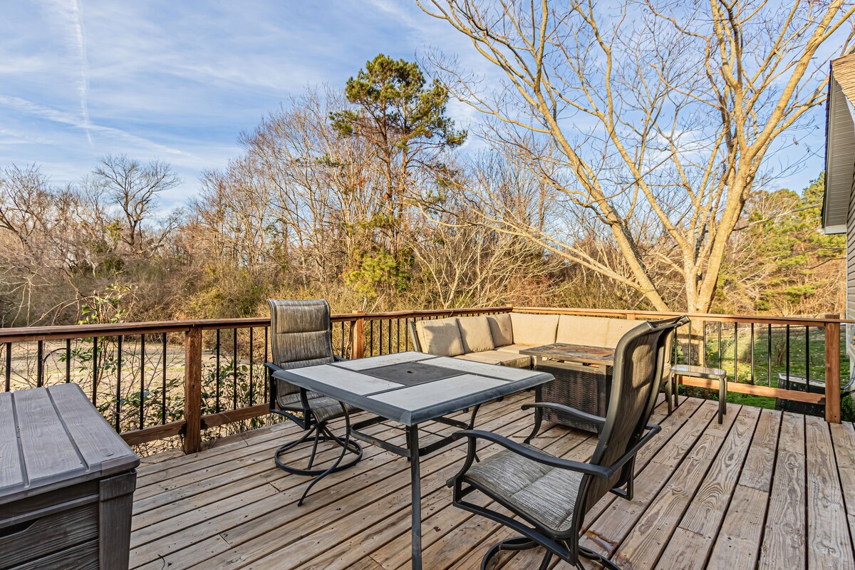 TI PIACE LA PRIVACY? Scappa e rifugiati nella tua area privata con questa casa con 3 camere da letto immersa in una strada privata, nascosta e circondata da alberi, su 2 acri; questa casa dispone di un patio/gazebo per un piacevole relax, per grigliare, per l'intrattenimento o semplicemente per godere di privacy. Rilassati con tutta la famiglia in questo alloggio tranquillo con pochi vicini. Divertiti con i giochi portafortuna, il cornhole e lo scenario naturale per creare fantastici ricordi. Inoltre, hai accesso completo al garage doppio per auto! Strada privata.