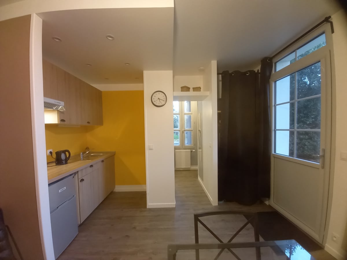 Au bout d'une grande Allée, Vous trouverez ce studio douillet de 30m2, décoré avec goût. Ce dernier est situé dans une propriété pleine de charme, érigée aux XVIII éme siècle. Il est très bien équipé: - Un coin cuisine: plaque cuisson au gaz, four micro onde, four, bouilloire, cafetière et frigo. - Un coin nuit avec 1 lit double (140*190), placard penderie. - Un coin bureau. - Une salle d'eau avec douche, vasque et WC. Place de parking sur la propriété, Accès Wifi (fibre).