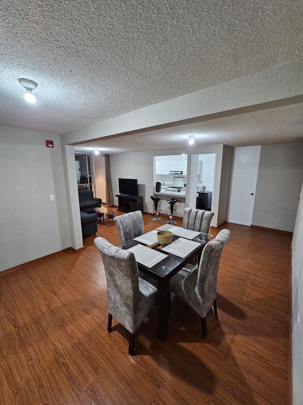 Accogliente appartamento di fronte al centro commerciale, pieno di luce naturale e dettagli curati. Offre 2 camere da letto con letti matrimoniali, TV e armadi, oltre a un comodo soggiorno e una zona pranzo per 4 persone. Situato in una zona sicura con negozi, ristoranti e servizi a pochi passi. Uno spazio curato con amore, progettato per farti sentire a casa e goderti un soggiorno tranquillo e confortevole.