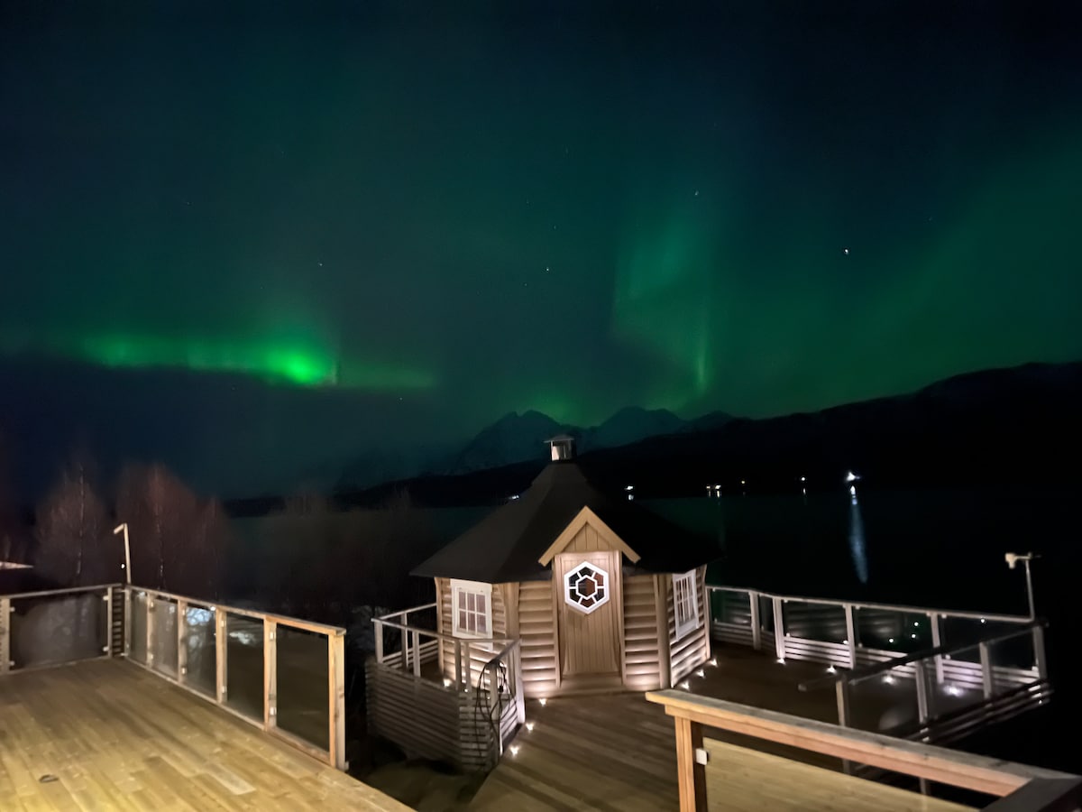 Lyngsalpene. Luci del nord. Vasca idromassaggio, natura, montagne