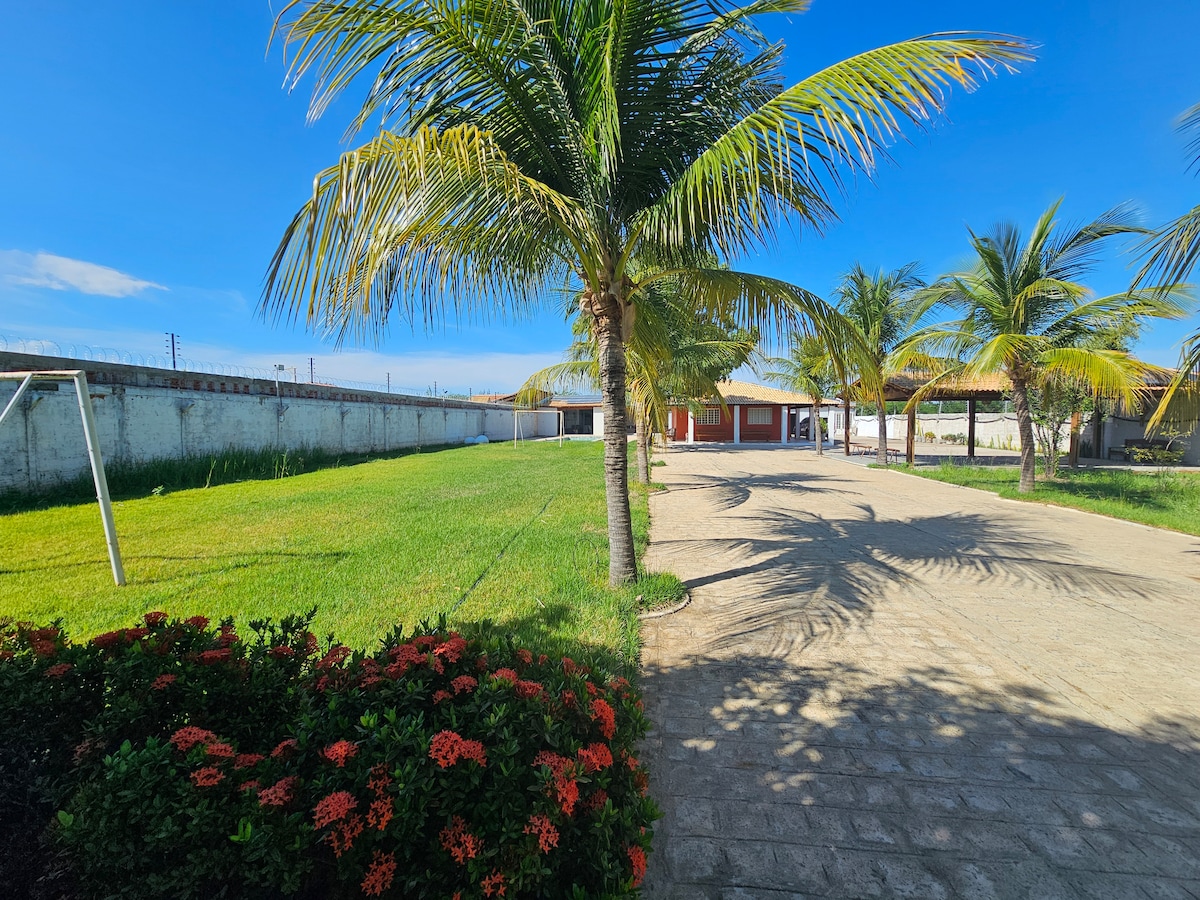 Rilassati con tutta la famiglia in questo alloggio tranquillo. cucina 2 camere da letto, una delle quali con bagno privato 2 camere da letto con aria condizionata 2 bagni sala terrazza zona ricreativa Giardino sala giochi giochi per bambini vicino a tutto: centro commerciale, cortile per eventi, fiume São Francisco e centro città.
