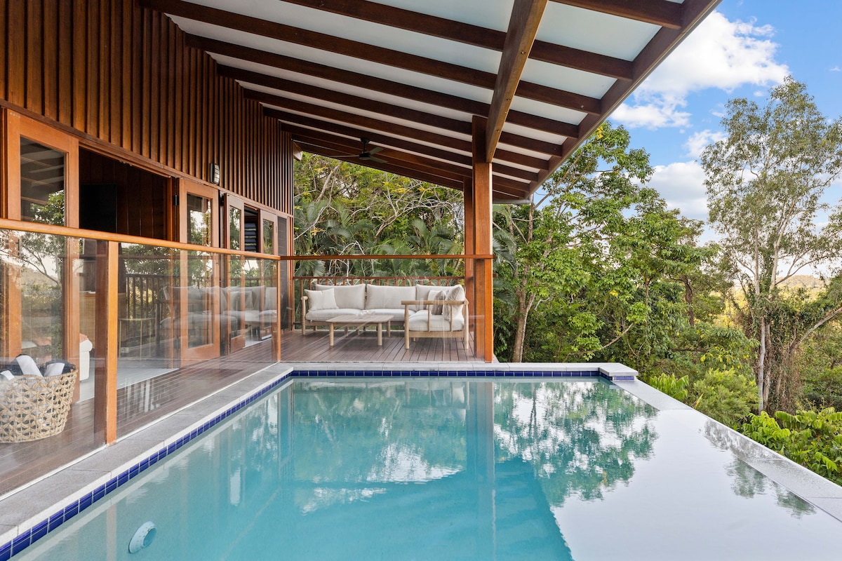 Walk in, drop your bags & relax at our private sanctuary unveiling top-of-the-world living and mesmerising panoramic vistas that will leave you spellbound. Relax and cool off in style with the deep saltwater infinity edge pool, allowing you to soak up the stunning rainforest & endless views. Coral Sea Drive is set on 2.6 acres of secluded rainforest gardens, just 5 mins away from Mossman Gorge, 15 mins from Port Douglas & surrounding beaches & a quick 5 min drive to the conveniences of town.