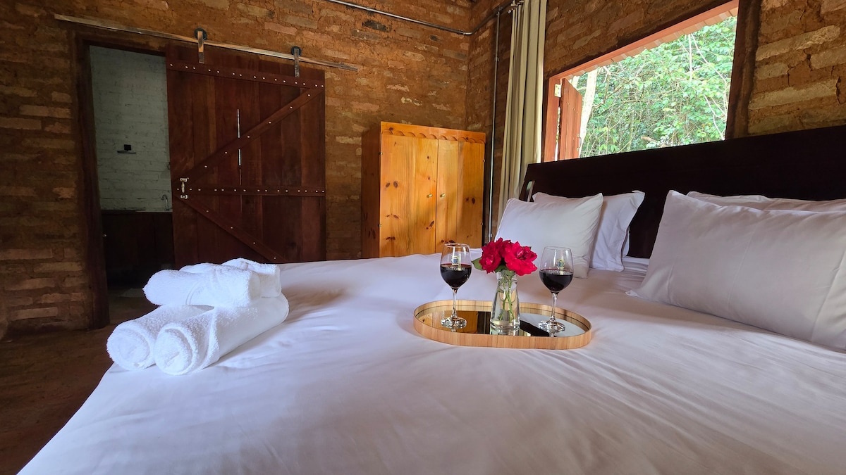 Refúgio em meio à natureza, cercado por árvores e Mata Atlântica, ideal para famílias e casais que buscam conforto, privacidade e tranquilidade. Loft modernista com suíte king em mezanino e pé-direito duplo, hidromassagem aquecida privativa, sauna, lareira aconchegante, lounge com vista para a mata, redes de descanso e áreas de leitura. Conta ainda com Wi-Fi e TVs, sendo perfeito tanto para descanso em família quanto para momentos especiais a dois.