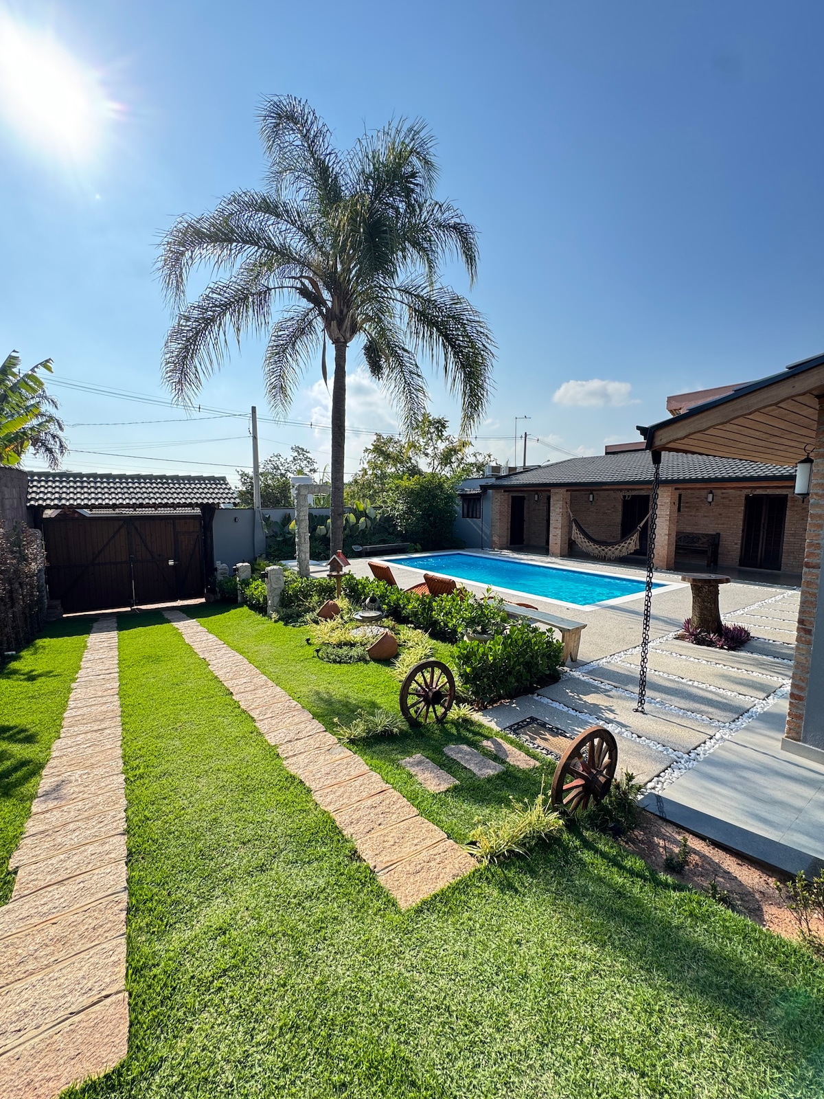 Spazioso cottage privato in un condominio sicuro vicino a Outlet Premium Bandeirantes, Hopi Hari e Wet'n Wild. Equipada con piscina privata, barbecue, camino, TV, tavolo da biliardo e area falò. Cucina attrezzata con utensili ed elettroportatili essenziali. Animali domestici ammessi, in una strada tranquilla e circondata dalla natura. Distanza dai parchi - 8 min in auto (4,1 km) Distanza dall'Outlet - 5 minuti di auto (2,0 km)
