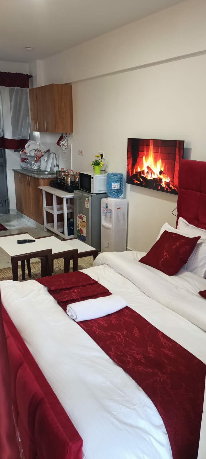 Scopri il tuo rifugio di comfort e praticità nel nostro elegante appartamento con una camera da letto e sicurezza 24 ore su 24, 7 giorni su 7, a pochi passi dal Kenyatta University Referral Hospital e a 5 minuti da Tatu City. Goditi un accogliente soggiorno, una cucina completamente attrezzata e un letto di qualità alberghiera per un sonno perfetto. Che tu stia cercando un rifugio tranquillo durante una visita medica, una base accogliente per esplorare Nairobi o una vacanza serena, il nostro appartamento offre la miscela perfetta di comfort moderni e calore familiare