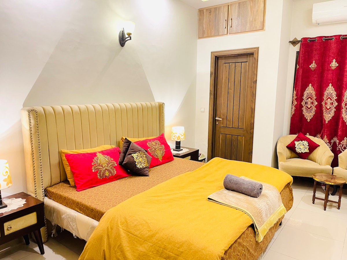 Welcome to our stylish two-bedroom suites in DHA 5 Islamabad. Enjoy the convenience of a quick commute and relax in a space featuring lovely decor and a fully-equipped home theater. Ideal for travelers seeking comfort and entertainment, this cozy retreat offers modern amenities in a prime location. It is a complete separate portion with it own separate entry and parking, family friendly, therefore very secure and peaceful. Parties & loud music is not allowed. Unmarried couples not allowed.