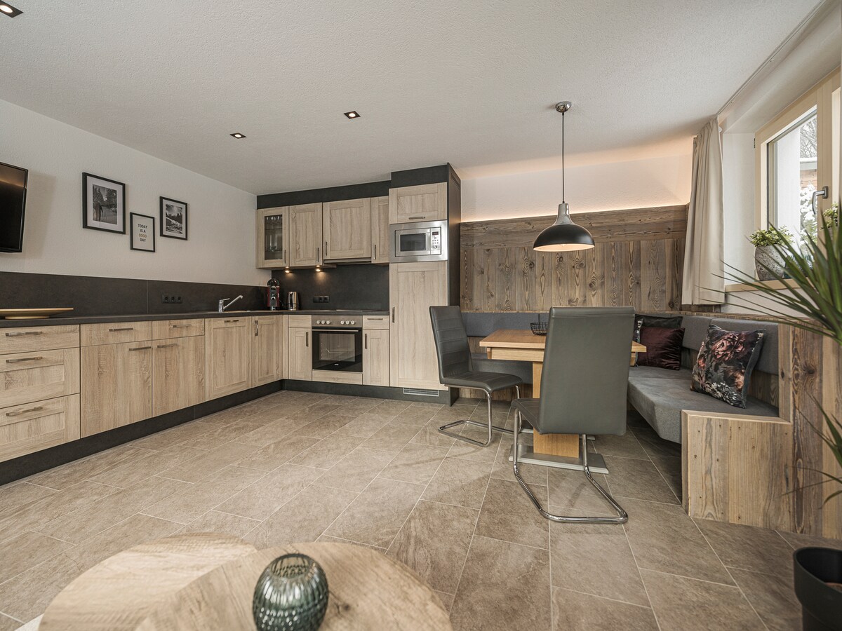 Accogliente, moderno, esclusivo, alpino e spazioso: l'appartamento Bedan nel villaggio di Gallzein (Tirolo - vicino alla Zillertal) colpisce per i suoi arredi artigianali e l'eleganza senza tempo. La tradizionale costruzione in legno tirolese combinata con elementi di design contemporaneo si ritrova in tutte le stanze. - 6 persone (su richiesta anche 7) - Appartamento di 100 m² - Ampio balcone - 2 camere da letto - Sauna in legno di pino cembro - Cucina completamente attrezzata - Postazione di lavoro (70 Mbit/s) - Cantinetta frigo per vini