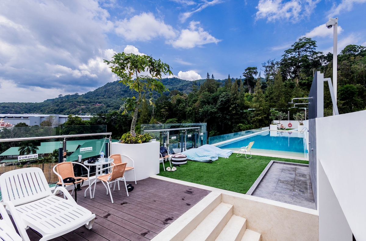 顶楼私人泳池 无敌海景两卧公寓 ,靠近kamala海滩 A82