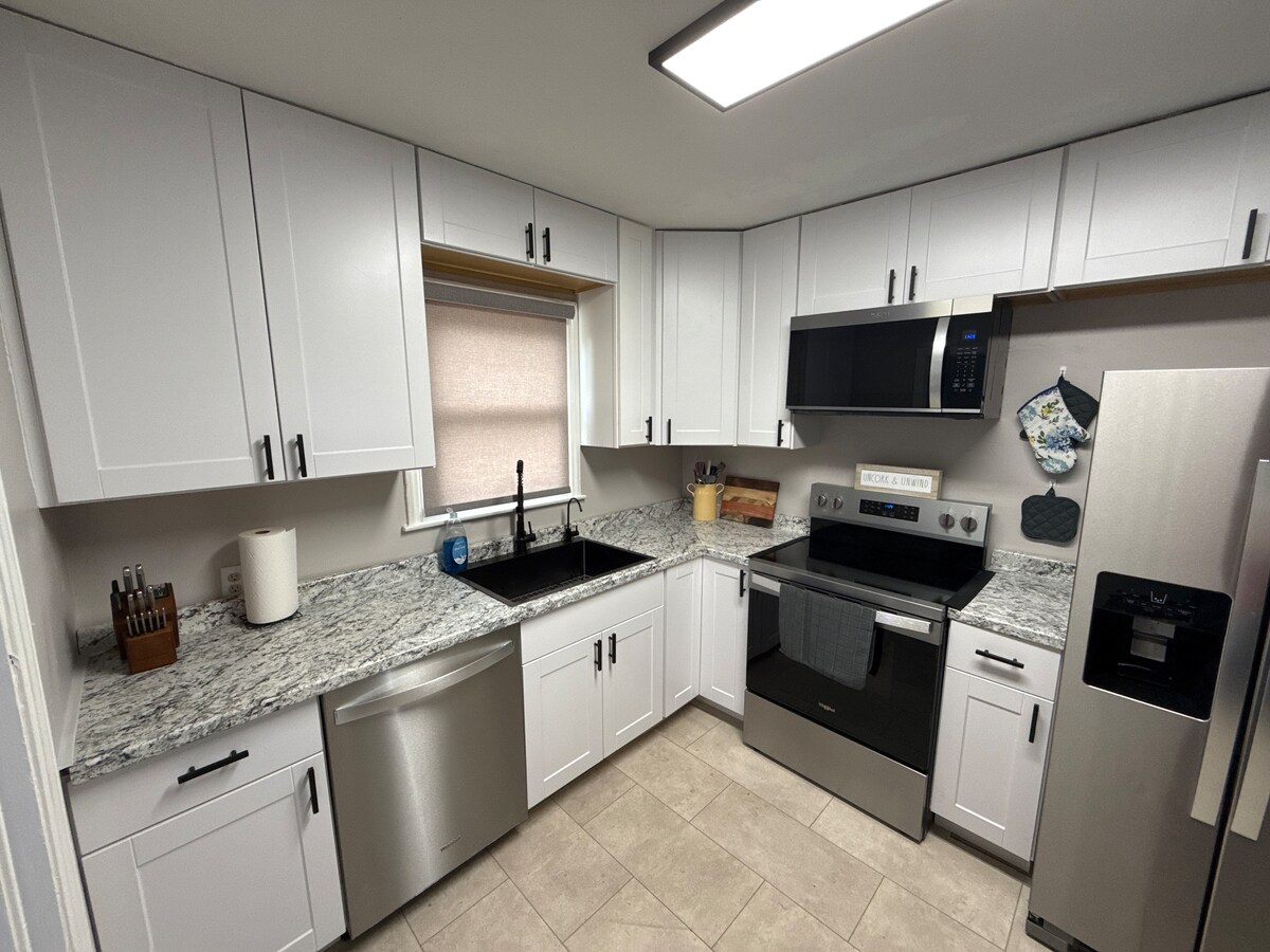 Casa recentemente ristrutturata con 4 camere da letto e 2 bagni, situata a due isolati dai campi da baseball e calcio della KSU. A meno di 10 minuti a piedi dal Bramlage e dal Bill Snyder Family Stadium. Due zone giorno separate, ciascuna con la propria smart TV. Master suite con bagno privato e smart TV. Tutti i mobili, materassi, biancheria da letto, asciugamani, ecc. sono nuovi. Goditi un caffè dalla macchina Keurig presso la postazione del bar. Veranda chiusa con zona bar e posti a sedere aggiuntivi. Parcheggio privato per due veicoli.