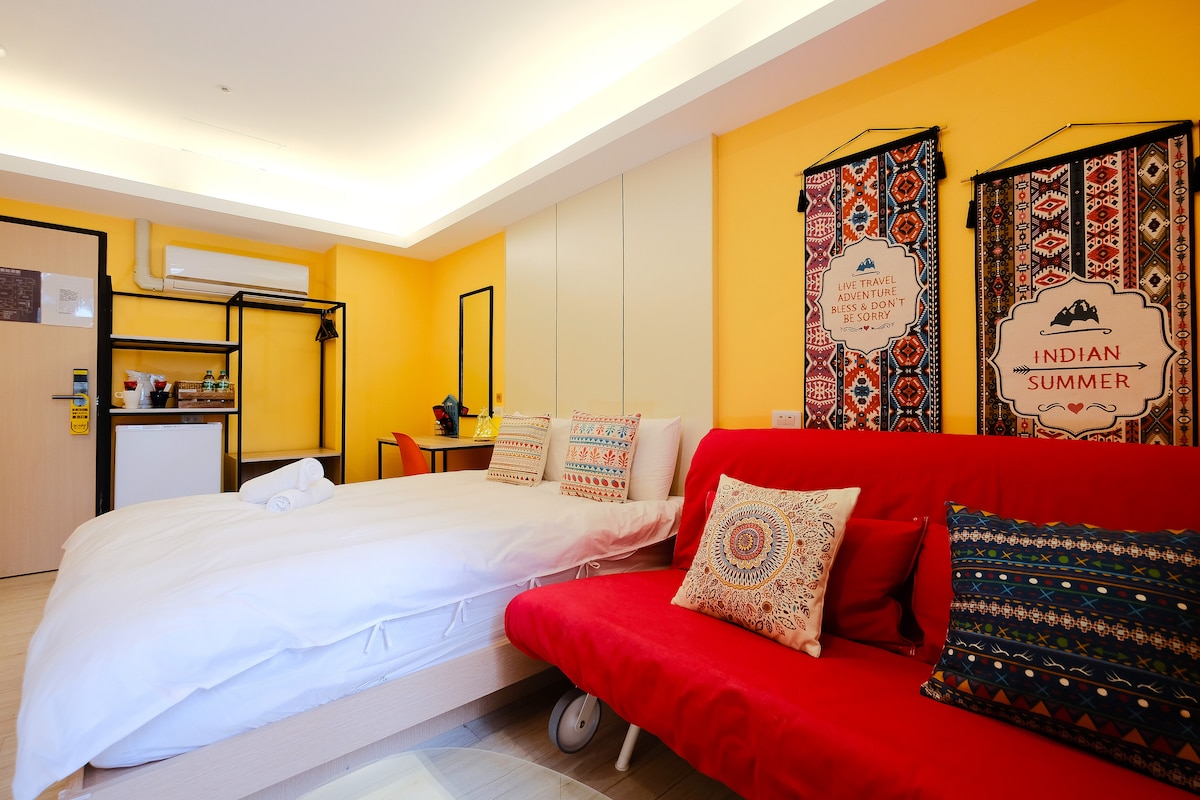 Situato nel vivace quartiere dello shopping Sandu di Kaohsiung City, a circa 3 ~ 5 minuti a piedi dalla stazione MRT di Sanxiu, a circa 15 minuti in MRT dall'aeroporto di Kaohsiung, a circa 10 minuti dalla stazione di Kaohsiung (HSR), oltre ai trasporti pubblici MRT, la metropolitana leggera unisce anche i mezzi pubblici, si trova a circa 10 minuti a piedi dalla stazione della metropolitana leggera (C8), dalle principali attrazioni famose di Kaohsiung, ci sono i grandi magazzini del Pacifico Sogo, Shin Kong Mitsukoshi e Dajuan nelle vicinanze, IKEA, MLD Dai aluminum Life Square e Carrefour sono anche a circa 10 minuti a piedi, oltre a vari grandi magazzini, c'è un mercato notturno autoguidato e Xingzhong mercato notturno In attesa che i viaggiatori esplorino vari snack tradizionali, inoltre, in termini di intelligenza umana, c'è una biblioteca di metodi architettonici di Kaohsiung molto speciale, utilizzando barre in acciaio sospese, design leggero, con tenda di vetro, quindi è anche la biblioteca più penetrante al mondo, credo che scegliere questo alloggio sia sicuramente la scelta migliore, sia è la posizione, lo shopping, i trasporti sono molto comodi. Lo stile interno "Route 66" è dominato dallo spirito pionieristico della Route 66 negli Stati Uniti, in modo che gli ospiti possano godere di un luogo confortevole e rilassante dove riposare e dormire in un viaggio appagante. La camera è dotata di un set completo di servizi igienici privati. Il focus è che il prezzo è molto piatto e ti farà sicuramente soggiornare in questo modo.
