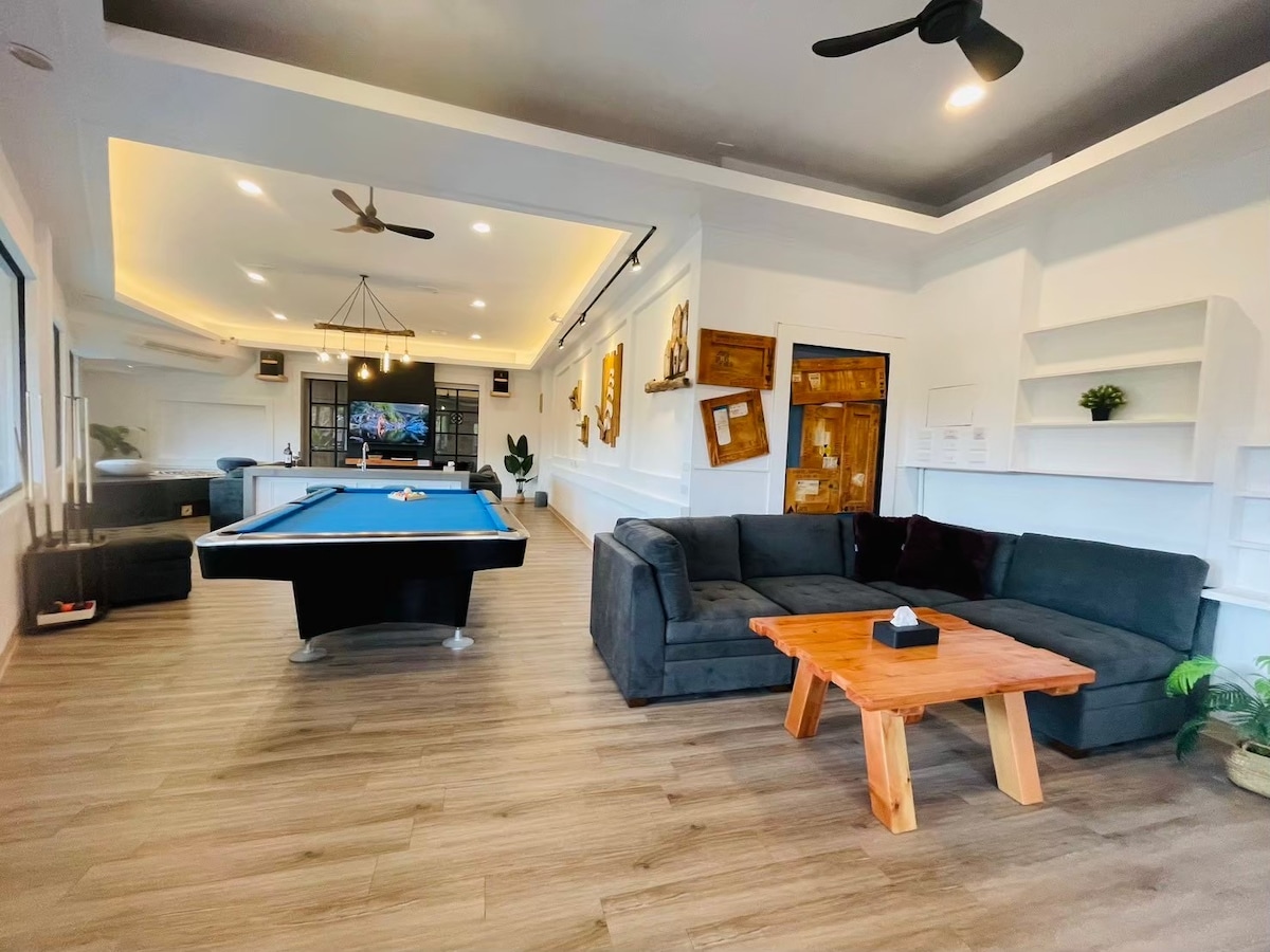 Villa Villa è una villa con design in stile americano, qualità e attrezzature ambientali sono più di alta qualità e lussuose e completamente attrezzate, e la biancheria da letto è di alta qualità a 5 stelle! • Spazio ampio e confortevole in famiglia per amici e parenti • L'area di intrattenimento è molto ben attrezzata e può essere utilizzata da tutte le strutture • Elevata privacy per le vacanze, senza timore di essere disturbati ~ • Finestra esclusiva per il ritiro dei piatti da asporto • C'è un parcheggio gratuito annesso esclusivamente per te (Parcheggio disponibile per 8-10 auto) • Solo un gruppo di VIP una volta, non con la governante! Lo spazio self-service di Li Bai e Baja, le varie strutture sono eccellenti, lo spazio interno è molto grande e la privacy è molto alta, sarai molto a tuo agio e rilassato, gli ospiti che soggiornano qui sono molto amati, il valore cp è alto Li Bai e Baja preparano una varietà di attrezzature ricreative per te: • Tavolo da biliardo professionale • Bersaglio elettronico per freccette • Tavolo da Mah Jong elettrico • Splash Pool • Doppio soggiorno • Isola centrale doppia • Set di due divani • Cucina doppia interna ed esterna • Area barbecue in giardino • Due TV con schermo grande da 65 pollici connesse (YouTube/Netflix disponibili) • Karaoke Non vediamo l'ora di ospitarvi per una fantastica esperienza di vacanza