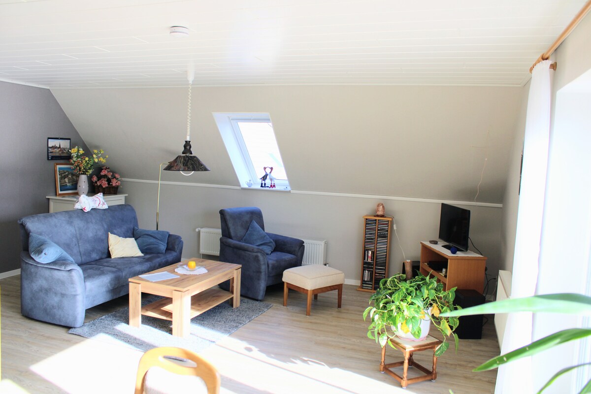 Die 2020 stilvoll renovierte und gut eingerichtete Ferienwohnung im 1.OG eignet sich für alle, die die Schlei- und Ostseeregion individuell erkunden wollen. Es gibt insgesamt 2 Schlafzimmer mit je einem Doppelbett, sowie 2 Schlafcouches im Wohnzimmer. Die Wohnung mit Echtholzparkett bietet Platz für 4-6 Personen, und hat als besonderes Highlight eine überdachte Dachloggia mit Schleiblick. W-Lan, TV mit Netflix. Die Wohnung eignet sich wegen einer Wendeltreppe nicht für Kinder unter 6 Jahren.