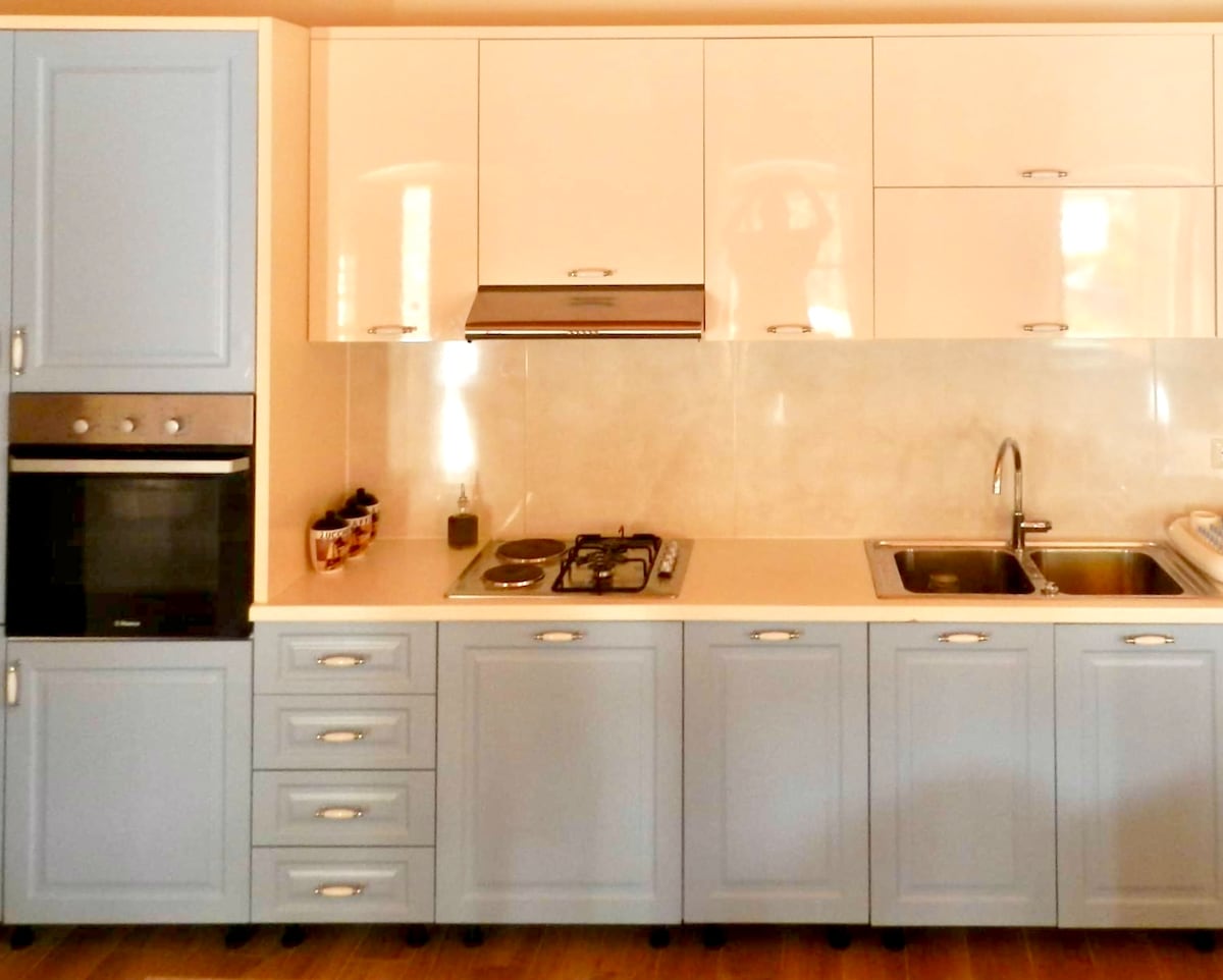Situato vicino alla collina, offre aria fresca e pulita. Un luogo tranquillo per le famiglie, a 5 minuti a piedi dal mare e dal Lungomare. Appartamento completamente arredato con tutto il necessario per farti sentire a tuo agio e rilassato. Ha uno stile elegante e tutti i comfort. 2 camere da letto, 2 bagni e 2 balconi, uno dei quali di 20 m², per godersi la cena mentre si ammira il tramonto sul mare e la vista della montagna vicina. Tutti i ristoranti, i bar e i supermercati sono raggiungibili a piedi in soli 5 minuti.