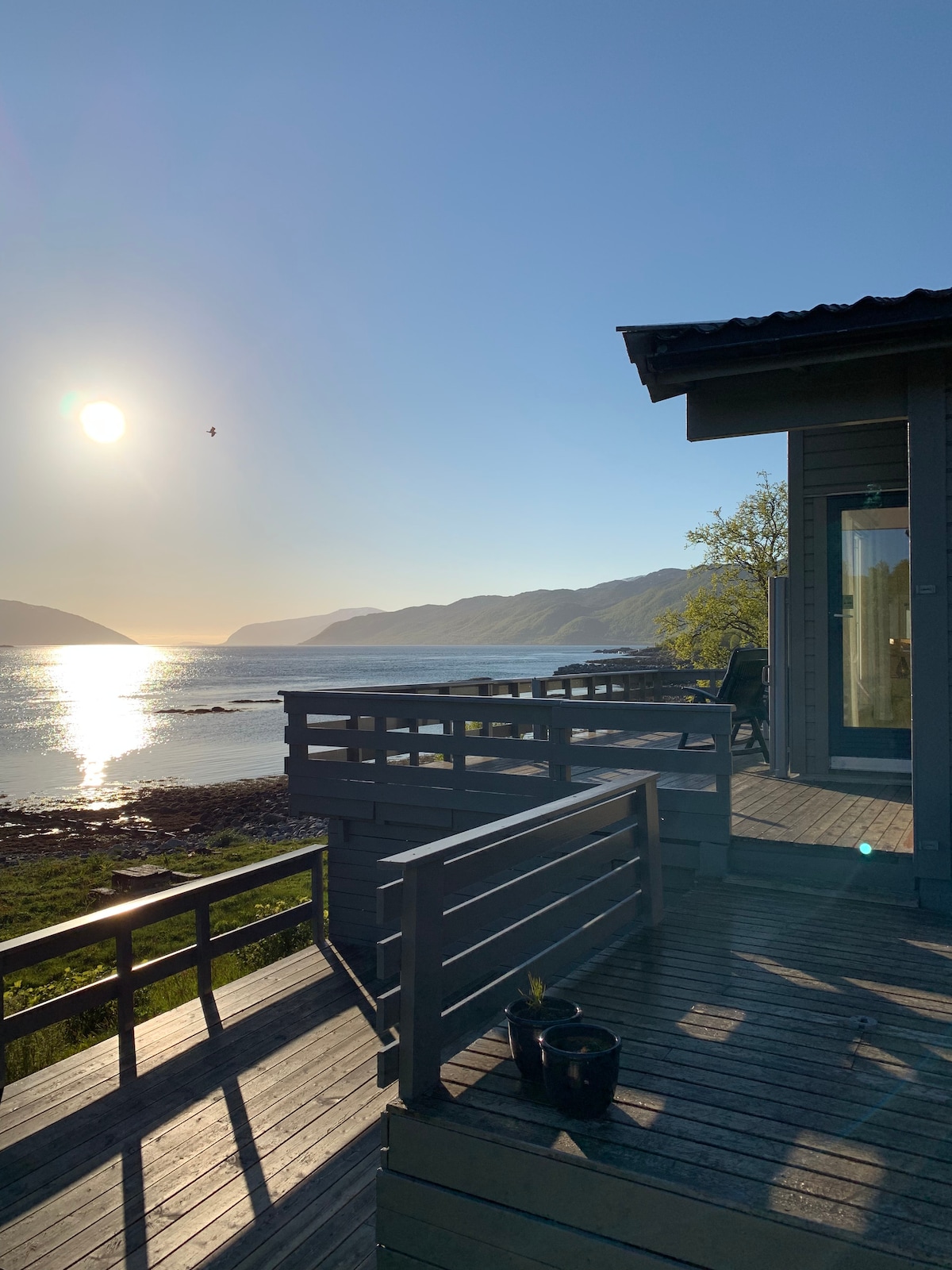 Bella casa rustica in riva al mare, in campagna, a 1 ora di auto dalla città di Tromsø. La zona è ideale per escursioni, sci, pesca e per ammirare il sole di mezzanotte in estate e l'aurora boreale durante l'inverno. A pagamento, i nostri ospiti possono anche prenotare la sauna con vista sull'oceano, con una vasca idromassaggio riscaldata a legna e una sauna posta su una grande terrazza all'aperto con un caminetto e un'accogliente zona relax al coperto. Gli ospiti possono utilizzare gratuitamente la nostra barca a remi di 3,6 metri e alcune attrezzature da pesca durante la stagione estiva.