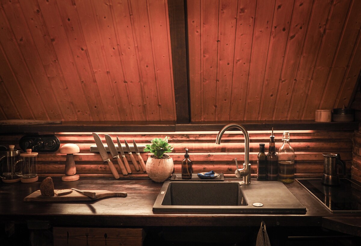 Rifugiati in una baita storica ristrutturata con gusto. Riscaldati nella sauna a legna, poi rinfrescati in uno stagno naturale. Goditi il suono della cascata, della foresta e della natura circostante. Rilassati vicino alla finestra con un fuoco scoppiettante. I comfort di lusso includono un sistema audio Bowers & Wilkins, una cucina completamente attrezzata ricavata da vecchie porte di legno e un bagno con pavimenti riscaldati e doccia a pioggia. Perfetto per un soggiorno romantico o per lavorare da remoto con un monitor Dell estraibile. A soli 30 minuti da Praga.
