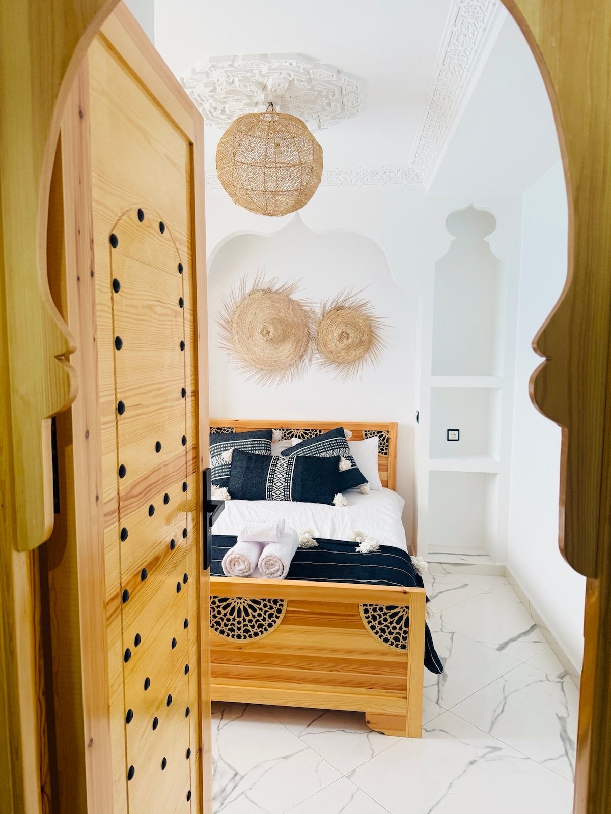 Etage privatif dans une maison d’hôte au cœur d'un village paisible à moins de 10 minutes de Oualidia et de sa lagune pour profiter des sorties surf ou balades le long des falaises. Des couchers de soleil à couper le souffle sur l'océan atlantique. La villa est située dans le village de Ayir dans les terres et proche des plages en voiture.