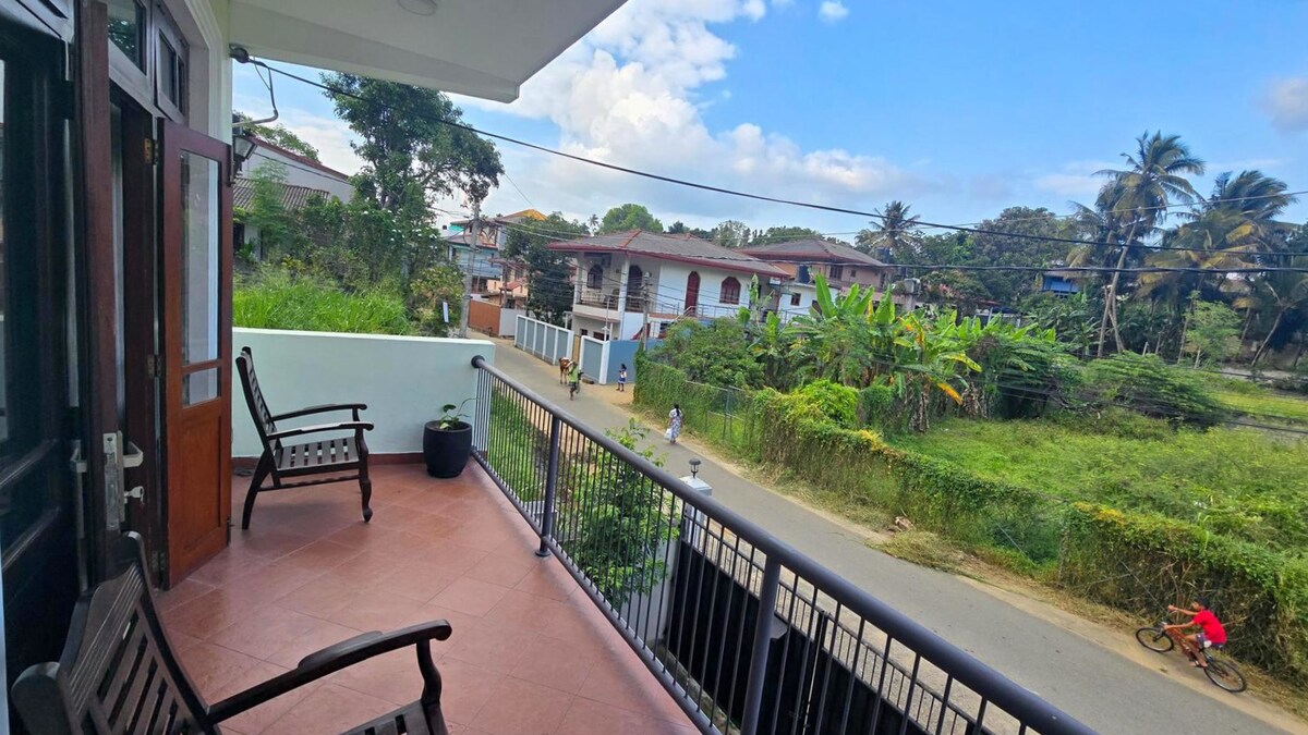 Spaziosa casa moderna incastonata tra il Giardino Botanico e a breve distanza dalla città di Kandy. Siamo in un quartiere molto tranquillo a pochi minuti dalla zona congestionata della città. Avrai il tuo ingresso con studio completo per vivere e lavorare in totale privacy, e una terrazza per lo yoga e prendere il sole. Situato a soli 5 minuti di auto dal giardino botanico, è anche vicino alla stazione ferroviaria di Peradeniya, una sosta ideale per i viaggiatori che arrivano o si dirigono a Ella. La struttura si trova su una piccola collina ed è ideale per gli amanti della natura.