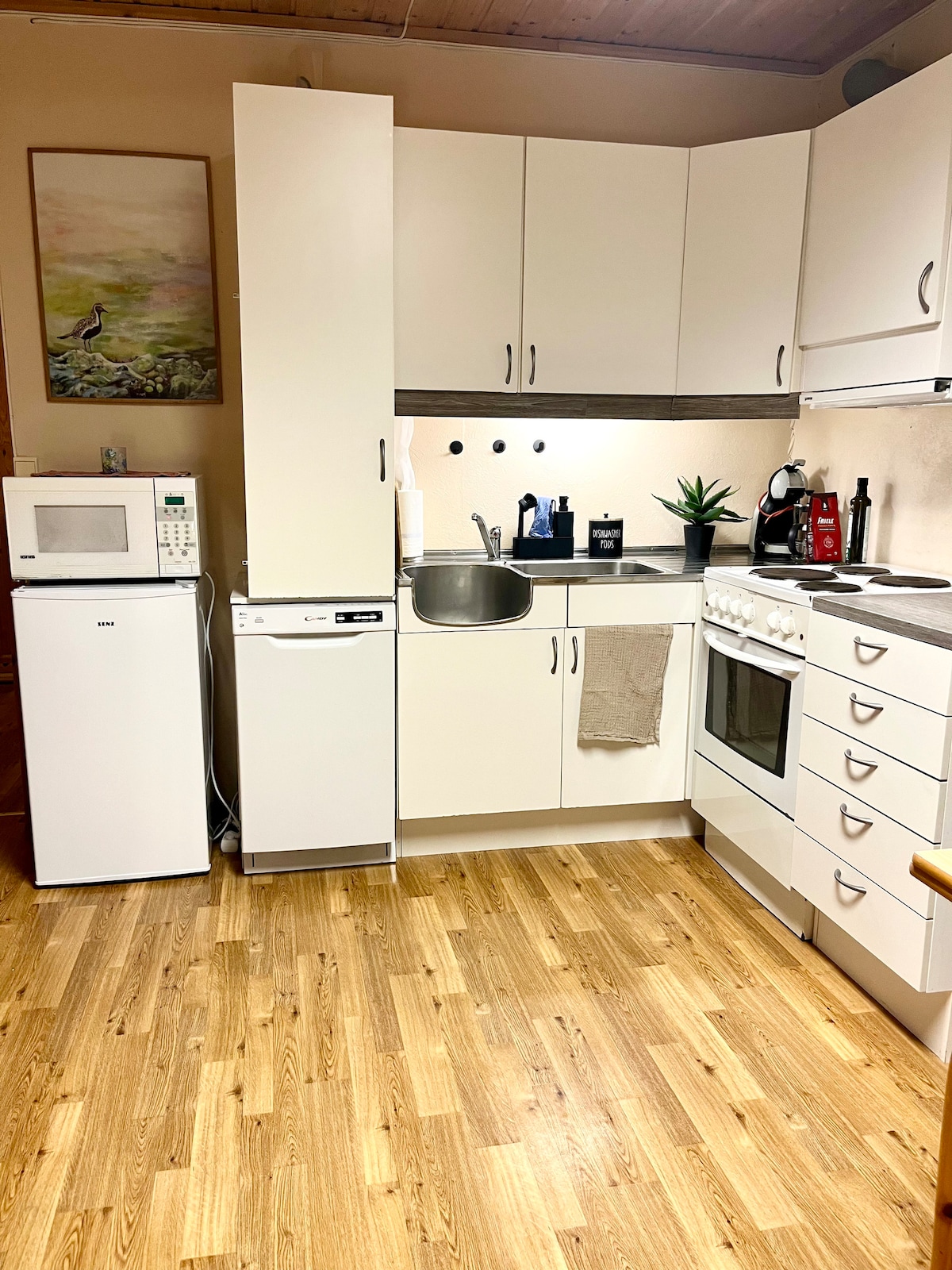 Rilassati con tutta la famiglia in questo alloggio tranquillo. Camera per 2 adulti e 2 bambini. Bagno privato/WC/doccia. Lavatrice, frigorifero, forno a microonde e piano cottura. 1 camera con 2 letti. Divano letto con topper nel soggiorno. Internet e TV gratuiti. Piattaforma riscaldata sotto il posto auto coperto. Ingresso privato. Possibilità di pesca proprio fuori. Il padrone di casa vive al piano di sopra. Cassetta di sicurezza con codice alla porta d'ingresso