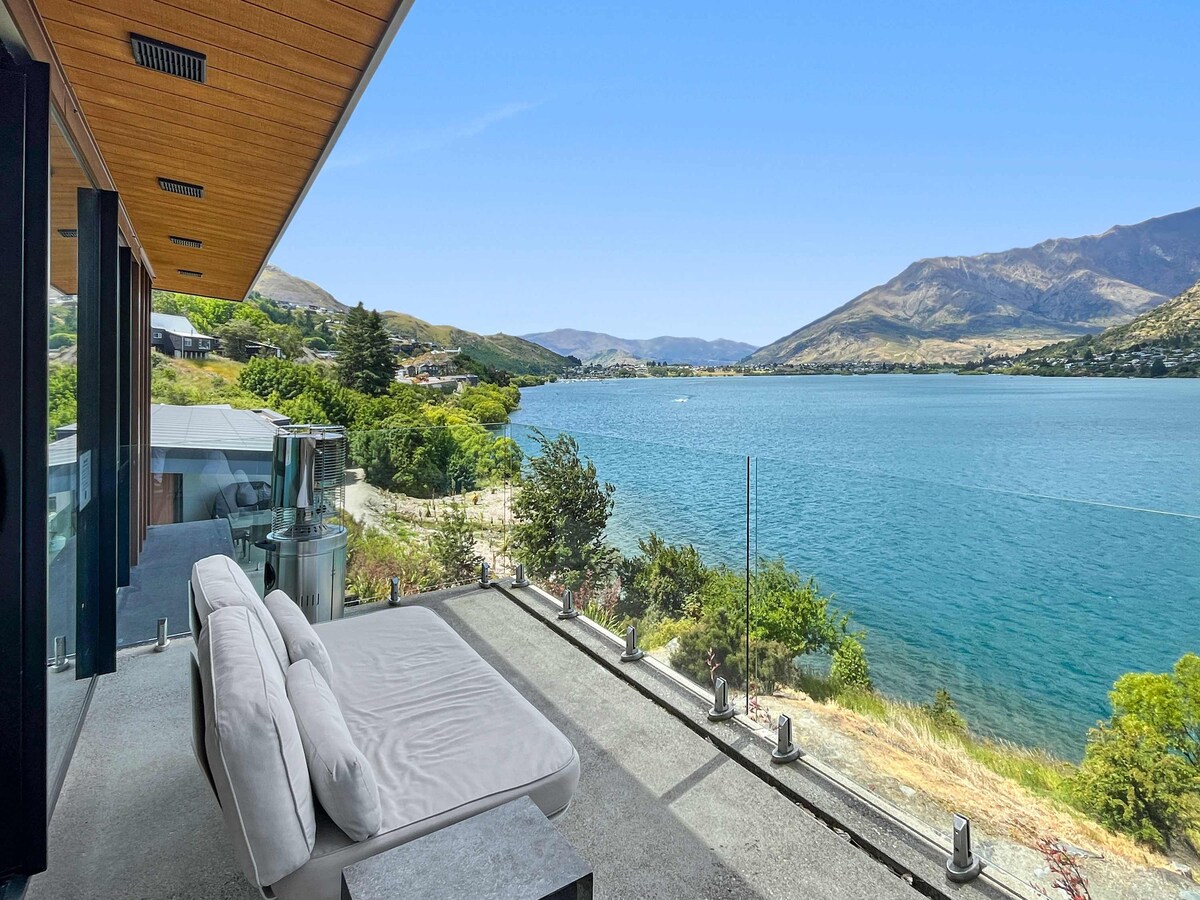Concediti una vacanza di lusso in questa casa fronte lago con vista sulla catena montuosa delle Remarkables, a soli 5 minuti di auto dal centro di Queenstown, dall'aeroporto e dal supermercato. Perfetta per un massimo di sei ospiti, vanta tre camere da letto, ognuna con vista sul lago, bagno privato e riscaldamento a pavimento. La cucina è completamente attrezzata, mentre la zona giorno si apre su una terrazza panoramica da cui ammirare il tramonto. Dotato di connessione Wi-Fi gratuita e accesso diretto ai sentieri lungo il lago, questo rifugio offre comfort e avventura.