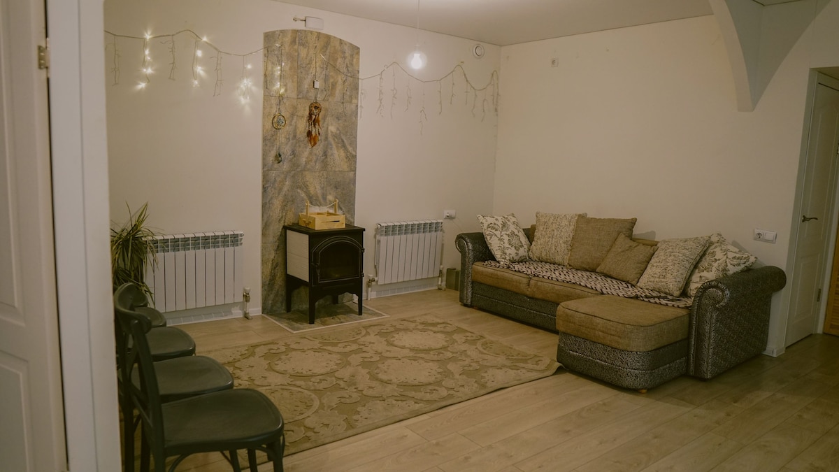 Elegante appartamento nel cuore di Almaty, sul lungomare di Esentai, accanto al centro commerciale Esentai, al parco e ai migliori ristoranti della città. Un affresco unico, un camino accogliente, arredi di design e viste sulle montagne dal 4° piano creano un'atmosfera di intimità e ispirazione. Cucina attrezzata, elettrodomestici, calici da vino e rare varietà di tè. Per gli ospiti che soggiornano almeno 5 notti, una bottiglia di vino kazako Arba in regalo. Lo spazio di 48 m² è ideale per una coppia, un viaggio creativo o un viaggio in solitaria.