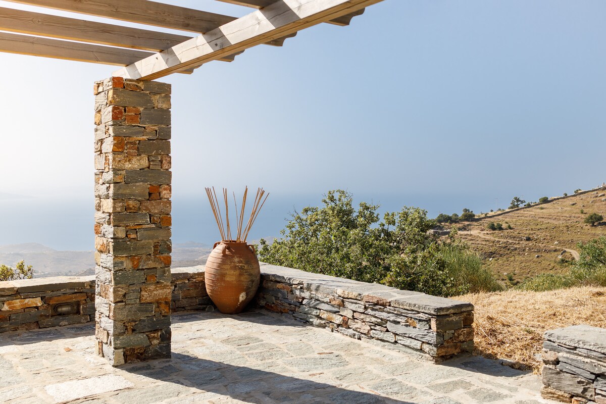 Una villa di nuova costruzione di 100 m² appena sopra Ioulida (la capitale tradizionale dell'isola, nota come Chora), con una vista mozzafiato su Chora e sul blu mozzafiato del Mar Egeo! È costruito secondo l'architettura tradizionale tziotiki, con verande in pietra locale tutt'intorno e parcheggio privato. Situato in un'area di 4000 m2 con querce, offre sistemazioni spaziose e confortevoli per un massimo di 6 persone.