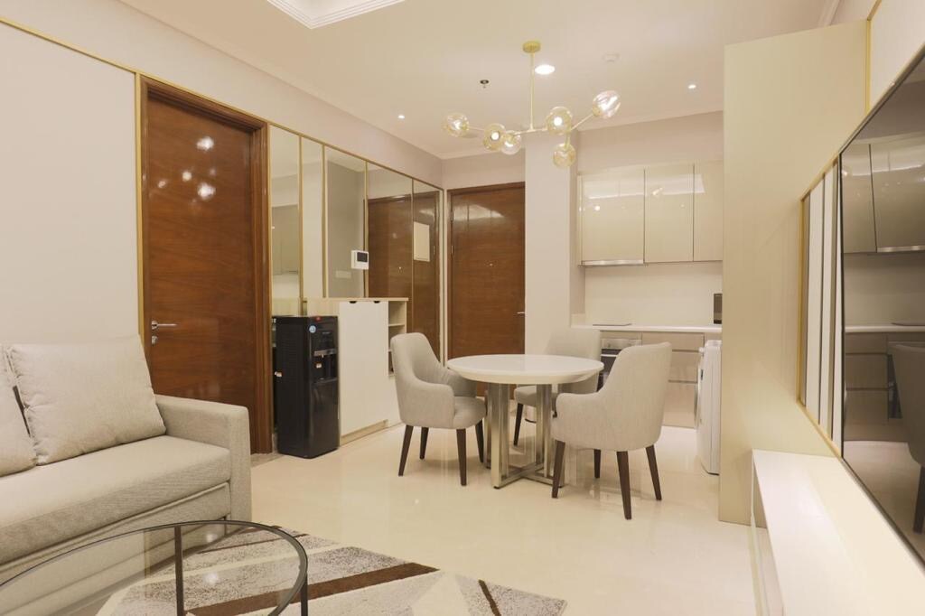 Questo appartamento con 2 camere da letto si trova nel cuore di Jakarta SCBD. L'unità offre materiali di qualità con ottimi servizi, come ascensore privato, piscina coperta, biliardo, palestra, sala riunioni accessibile, cortile e anche area per bambini. Adatto a viaggiatori d'affari o coppie in vacanza che hanno bisogno di un'area privata in una posizione strategica privilegiata. Ti auguro un piacevole soggiorno.
