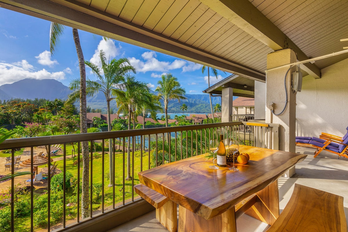 Brand New Listing at the Hanalei Bay Resort. Wake up to breath taking views of the Hanalei bay, waterfalls and the amazing lush green mountains of the garden island. Along with the amazing scenery you will also have access to pools, hot tubs, tennis courts, private beach access, weight room facilities and enjoy live music every night at the Happy Talk Lounge. All of theses activities are just a minutes walk from your front door or enjoy a relaxing golf cart shuttle ride.