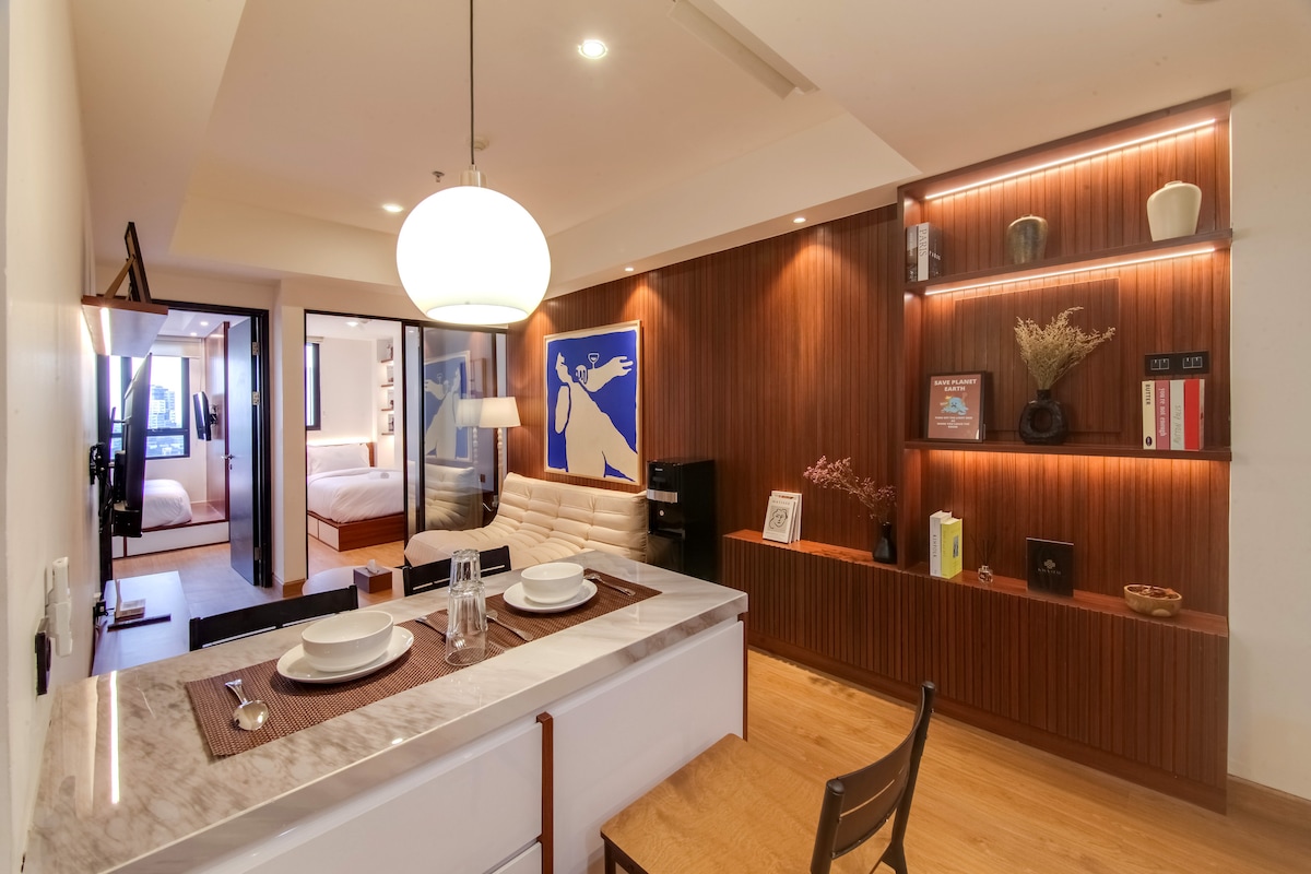 Goditi un soggiorno elegante in questo appartamento moderno e accogliente, progettato sia per il comfort che per la comodità. La camera dispone di un letto comodo, una smart TV, una scrivania vicino alla finestra e interni eleganti con illuminazione calda. Perfettamente situato in città, sarai vicino a centri commerciali, ristoranti e trasporti pubblici. Ideale per chi viaggia da solo, in coppia o per viaggi di lavoro, questo spazio è la tua casa perfetta lontano da casa. BF