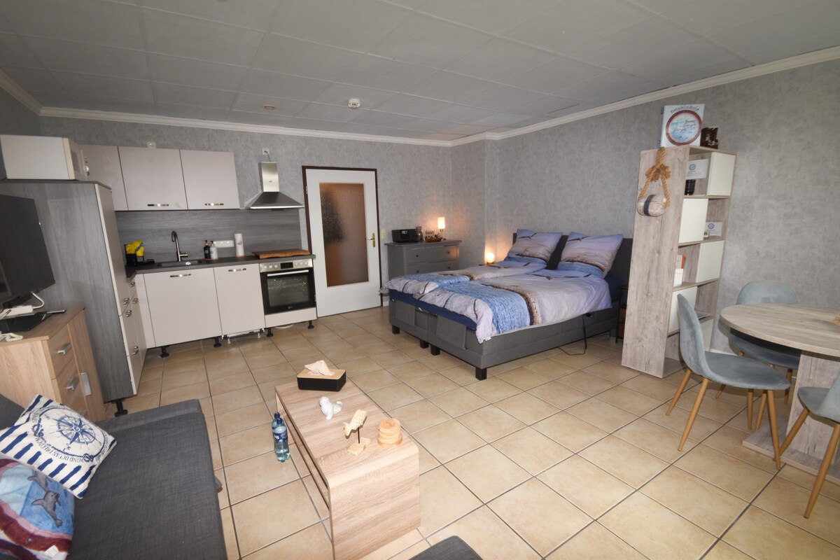 Die kleine Wohnung in der Nähe von Wald und Kirche bietet Platz für 2 Personen und hat ein gemütliches Wohn-/Schlafzimmer mit großem Bett und kompakter Küchenzeile mit dem Wichtigsten drin. Bettwäsche, Handtücher sowie Endreinigung sind inklusive. Der Strand ist in etwa 10 Gehminuten erreichbar. Im Garten summen Bienen, frischer Honig direkt von der Imkerin (mir). Haustiere sind nicht erlaubt. Die Gemeinde erhebt eine Kurabgabe, zahlbar bei Anreise. Willkommen im Haus Hubertus.
