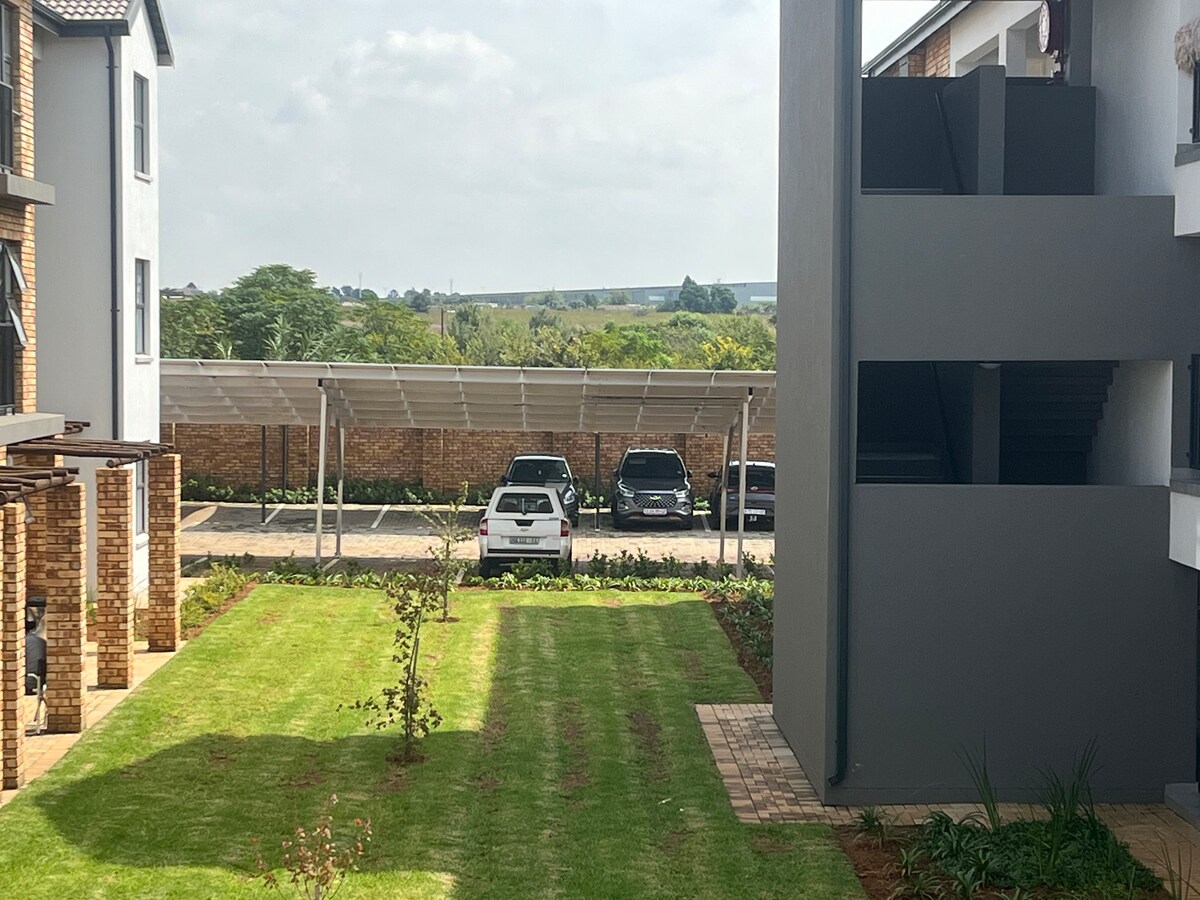 Goditi un soggiorno sicuro ed elegante in questo moderno appartamento con due camere da letto, vicino all'aeroporto O.R. Tambo. Approfitta di guardie di sicurezza in loco 24 ore su 24 e di un comodo check-in 24 ore su 24, Wi-Fi ultraveloce, aria condizionata e alimentazione supportata da UPS per garantire connettività e ricarica ininterrotte durante il carico. Prepara i pasti senza sforzo con un piano cottura a gas e goditi il comfort delle docce riscaldate a energia solare. Perfetto per chi viaggia per lavoro e per le famiglie in cerca di comfort, sicurezza e tranquillità.