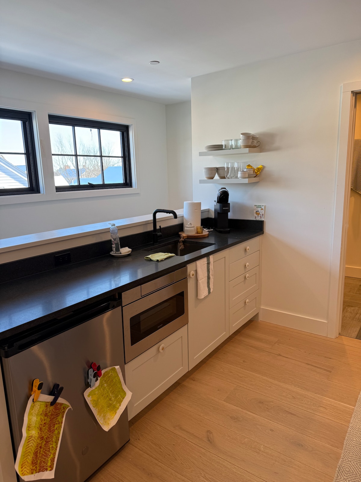 Uno spazio letto a soppalco con divano letto opzionale aggiuntivo dotato di materassi in schiuma ergonomica. Questo spazio dispone di aria condizionata e riscaldamento, nonché di una straordinaria luce naturale. Bagno nuovissimo con soffione a pioggia! Una cucina completa con mini frigo, spazio freezer separato, forno, piano cottura e set per la preparazione di caffè e tè. Situato in posizione centrale a Brunswick, ma tranquillo! Proprio di fronte al Whittier Field di Bowdoin e a 10 minuti a piedi da Maine Street.