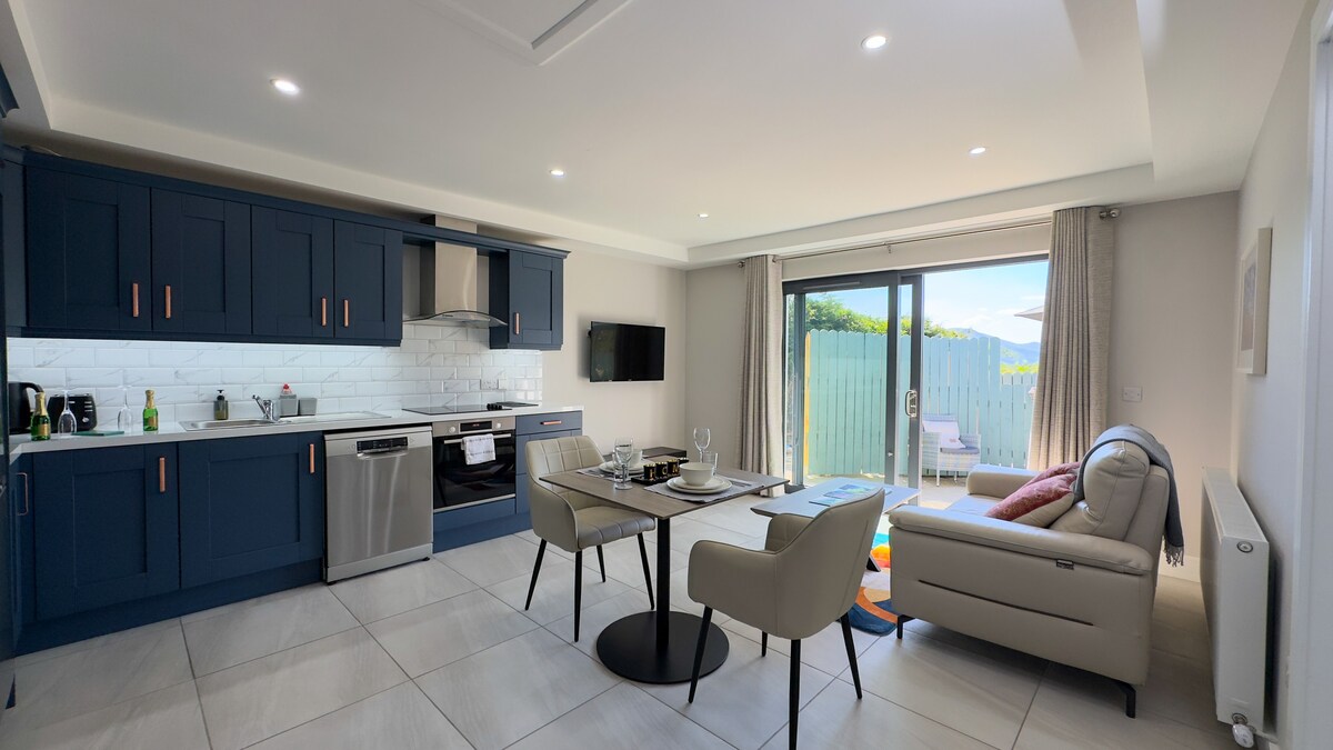 Appartamento di lusso con 2 letti e vista mozzafiato sul Gap of Dunloe e McGillycuddy Reeks. Le 2 camere da letto con bagno interno sono arredate secondo standard elevati. C'è un conservatorio soleggiato per rilassarsi. La cucina e il salotto hanno una parete di vetro completa per godere della splendida vista. La nuova cucina è completamente attrezzata. Il Lounge dispone di una TV da 40"con Netflix e WIFI. Ottima posizione a 10 km da Killarney e a 5 km da Gap of Dunloe. Accanto al villaggio di Beaufort sulla rotta Ring of Kerry sulla Wild Atlantic Way.