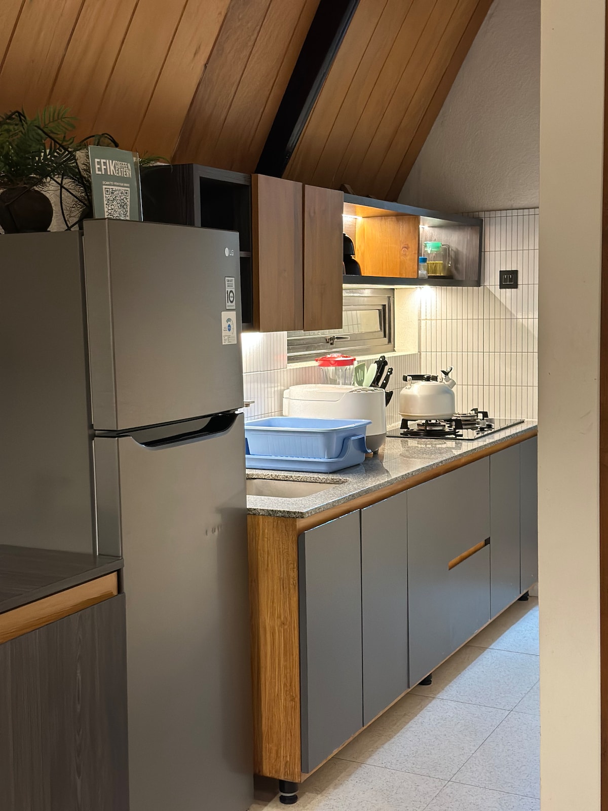 Blue Sky Villa: uno dei migliori alloggi a Baturaden La posizione è a Baturaden, quindi è sicuramente serena, tranquilla e circondata da uno scenario che rende sereno anche il cuore. La villa è davvero spaziosa, perfetta per un soggiorno lungo. C'è un accogliente spazio per riunioni, una camera da letto che ti fa sentire a casa, oltre a un'area esterna per rilassarsi mentre ti godi l'aria fresca di montagna. Qui, svegliarsi al mattino è un'esperienza di pace. Cieli azzurri, aria fresca e un'atmosfera che ti fa dimenticare la folla della città.