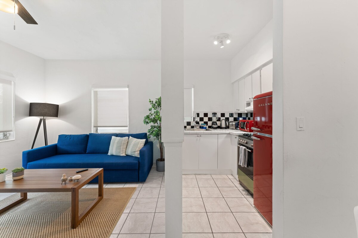 🏡 Elegante rifugio al primo piano di Española Way – A pochi passi dalla spiaggia, con parcheggio gratuito! Posizione privilegiata. Soggiornerai nell'iconica South Beach, una delle zone più famose di Miami. Se hai visto il film "Scarface" o "Miami Vice", riconoscerai questo quartiere. Ocean Drive, Lincoln Road Mall, Española Way, Washington Avenue e Collins Avenue ✨ Letto matrimoniale✔ grande + divano letto a due piazze ✔ Posto auto gratuito Cucina ✔ completa + nuovo bagno completo (2025) Attrezzatura da ✔ spiaggia (asciugamani,...) WiFi ✔veloce