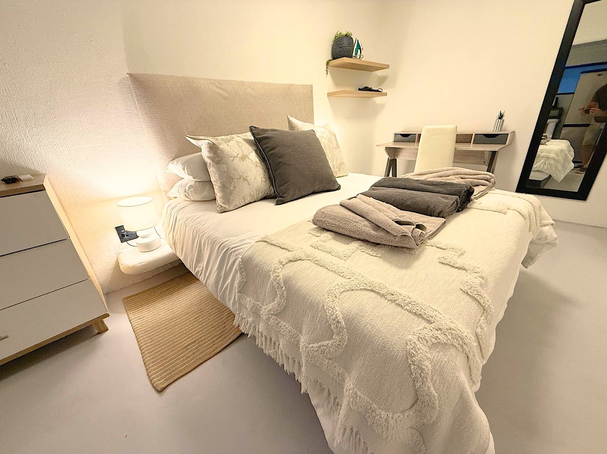 Questa è la tua casa lontano da casa. Vieni a stare nella tua "casa lontano da casa". Rilassati in privato in una spaziosa casa a schiera elegantemente arredata e climatizzata, recintata in modo sicuro. Nelle calde giornate estive, rinfrescati nella piscina. Goditi i tramonti nel patio o un tipico braai sudafricano nell'apposita struttura. ** Disponiamo di un sistema di back-up di riduzione del carico, quindi le interruzioni di corrente non influiranno sul tuo soggiorno.
