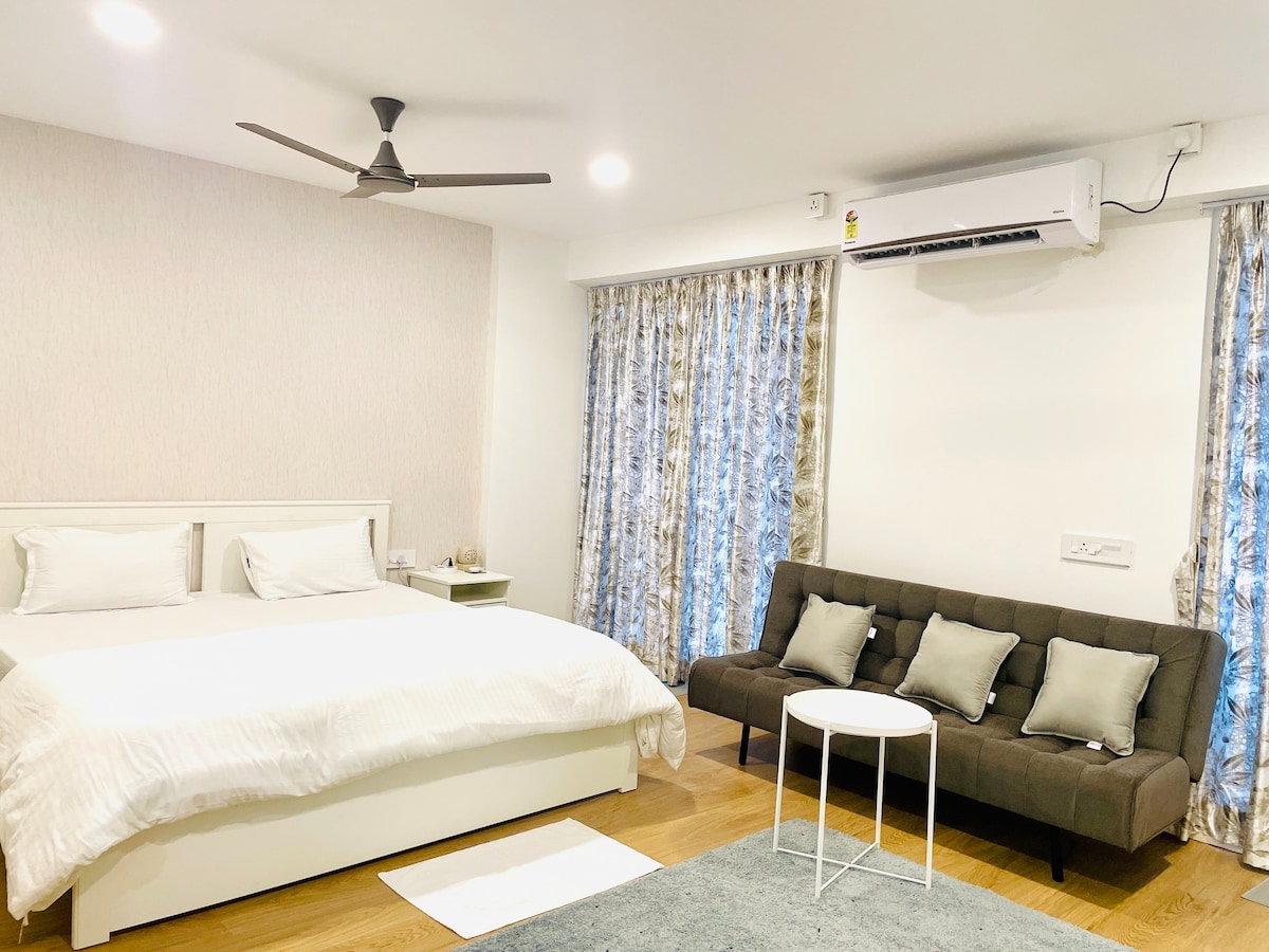 Ti diamo il benvenuto nel nostro elegante e accogliente appartamento con 1 camera da letto, situato a 15 minuti dall'aeroporto di Pune. Goditi la tranquillità di questo moderno rifugio dotato di aria condizionata per il massimo comfort. Riproduci in streaming senza problemi con il wifi fino a 100 Mbps e fai la spesa comodamente con il nostro supermercato interno. Assapora tè e caffè in omaggio mentre ti rilassi su materassi premium rivestiti di lenzuola di qualità. Ti tuteliamo sempre, fornendoti shampoo e bagnoschiuma per un soggiorno senza pensieri. Prova il comfort e la comodità al meglio!