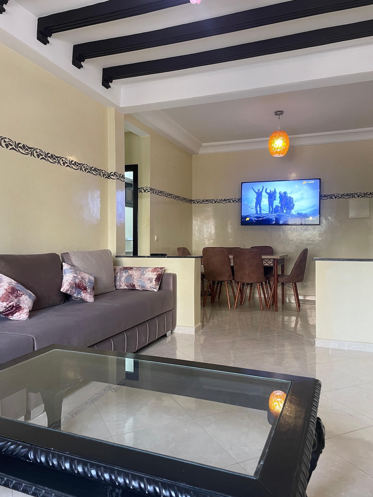Appartamento di 100 mq, situato in posizione ideale su Boulevard Mohammed V, nel cuore di Khemisset. Perfetto per le famiglie, questo appartamento dispone di 2 camere da letto, 2 soggiorni, una sala da pranzo, una cucina completamente attrezzata e un bagno. Goditi una smart TV e Internet ad alta velocità. L'edificio è tranquillo e sicuro, con un bar al piano terra e una sala giochi con tavoli da biliardo e Snooker e stazioni di gioco PS5 per i bambini. Parcheggio custodito e gratuito disponibile.