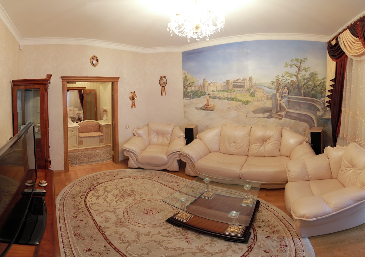 Cari ospiti!La vostra attenzione è offerto un appartamento notevole nel bellissimo quartiere centrale della città di Nikolaev. L'appartamento è situato nel centro con nuova riparazione euro che è stato fatto abbastanza di recente. Quindi sono sicuro che apprezzerete l'appartamento e l'atmosfera, così come la mia ospitalità! Indirizzo posizione appartamento - Nikolaev, Karla Liebknechta str. 2 B, (Sovetskaya District)L'appartamento ha tutto il necessario per una vita confortevole, vale a dire - mangiare - wi-fi internet illimitato, lavatrice, aria condizionata, forno a microonde, plasma, frigorifero, TV via cavo, Da mobili per la posizione - un grande letto + un divano singolo. Vicino alla casa è un cortile custodito chiuso (per le auto). Quindi non avrai problemi con dove e come mettere la tua auto se stai guidando. Non preoccuparti di tenerlo al sicuro!Se necessario, possiamo fornire un portatile. Solo, naturalmente, chiedere in anticipo - in modo da poter preparare tutto!Quindi, se hai bisogno di una segnalazione, saremo pronti a fornirti i documenti necessari, facilmente. Benvenuto a Nikolaev! Per qualsiasi domanda, inviami un messaggio. Cordiali saluti, Julia